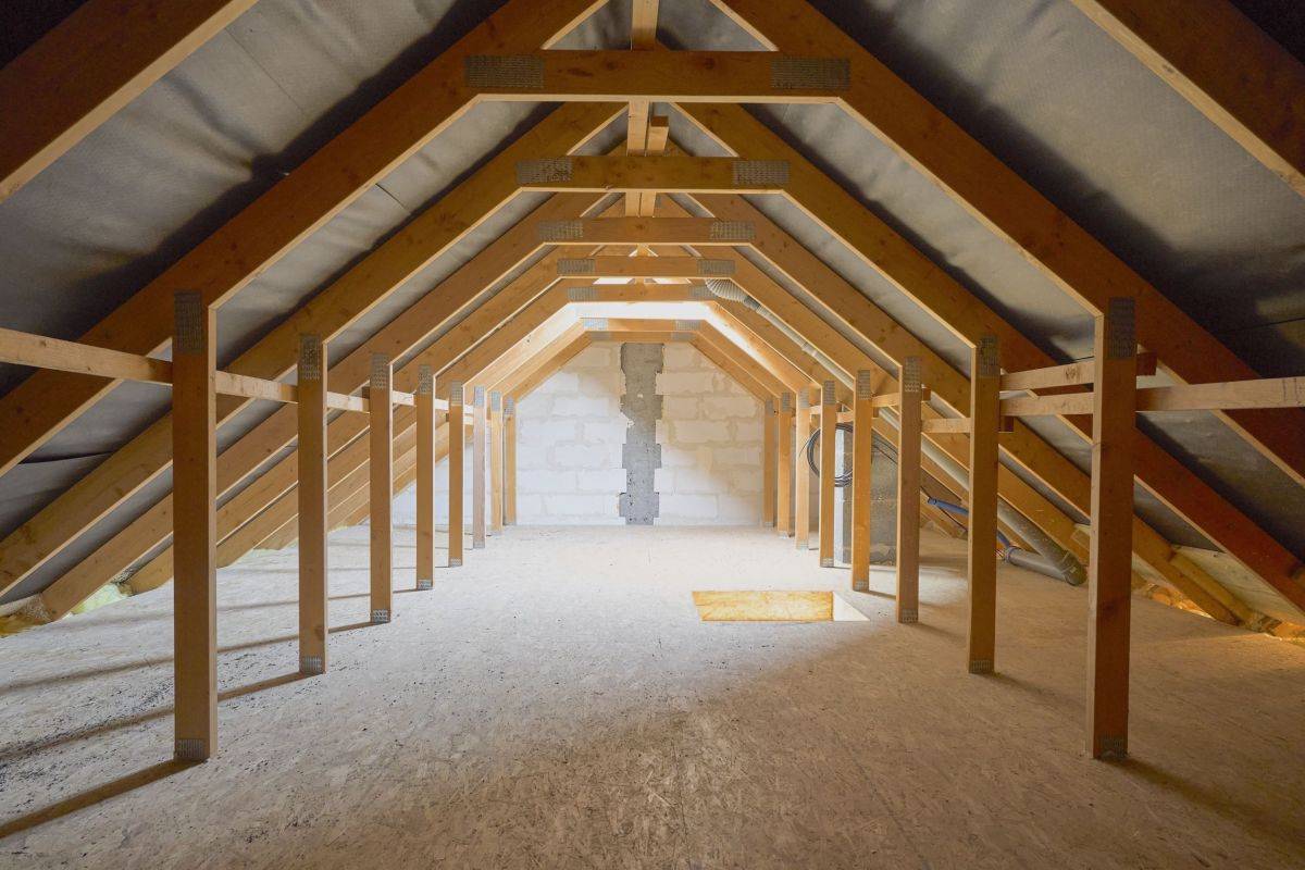 - Strych - wysokie pomieszczenie z oknem, wyłożone płytą OSB , to świetne miejsce na przechowywanie rzeczy