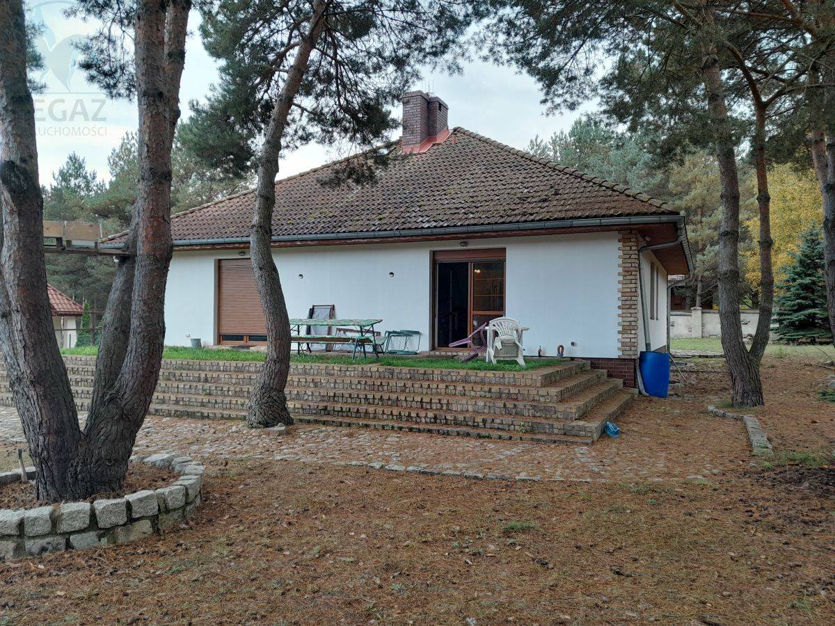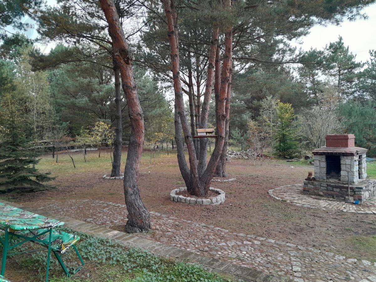 Działka o powierzchni 1750 m² to prawdziwa oaza spokoju i rekreacji. Znajdują się na niej stylowy grill, boisko do siatkówki, a także drzewa owocowe i sosny, które dodają naturalnego uroku. Całość jest od drogi ogrodzona murem, z wykończonym chodnikiem i schodami na taras z cegły i kamienia, co nadaje nieruchomości wyjątkowy charakter.