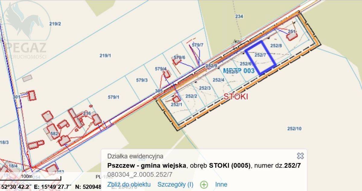 Oferujemy na sprzedaż wyjątkową działkę budowlaną, położoną w urokliwej miejscowości Stoki , zaledwie 4 km od popularnej miejscowości turystycznej Pszczew . Ta malownicza lokalizacja zachwyci każdego miłośnika natury i spokoju, oferując przepiękne widoki na rozległe pola i lasy. W bliskim sąsiedztwie znajdują się jeziora Pszczewskie i Szarcz, co czyni tę działkę idealnym miejscem do wypoczynku i zamieszkania z dala od miejskiego zgiełku.Działka o numerze 252/7 zgodnie z Miejscowym Planem Zagospodarowania Przestrzennego wydanym decyzją gminy Pszczew z dnia 26 marca 1998 roku (uchwała Gminy Pszczew nr XXXV/221/98) przeznaczona pod zabudowę jednorodzinną. Obszar ten gwarantuje spokojne i komfortowe warunki do realizacji własnego domu. Dodatkowo, działka 252/9 wyznaczona jest jako droga wewnętrzna, zapewniając dostęp do sąsiednich działek.