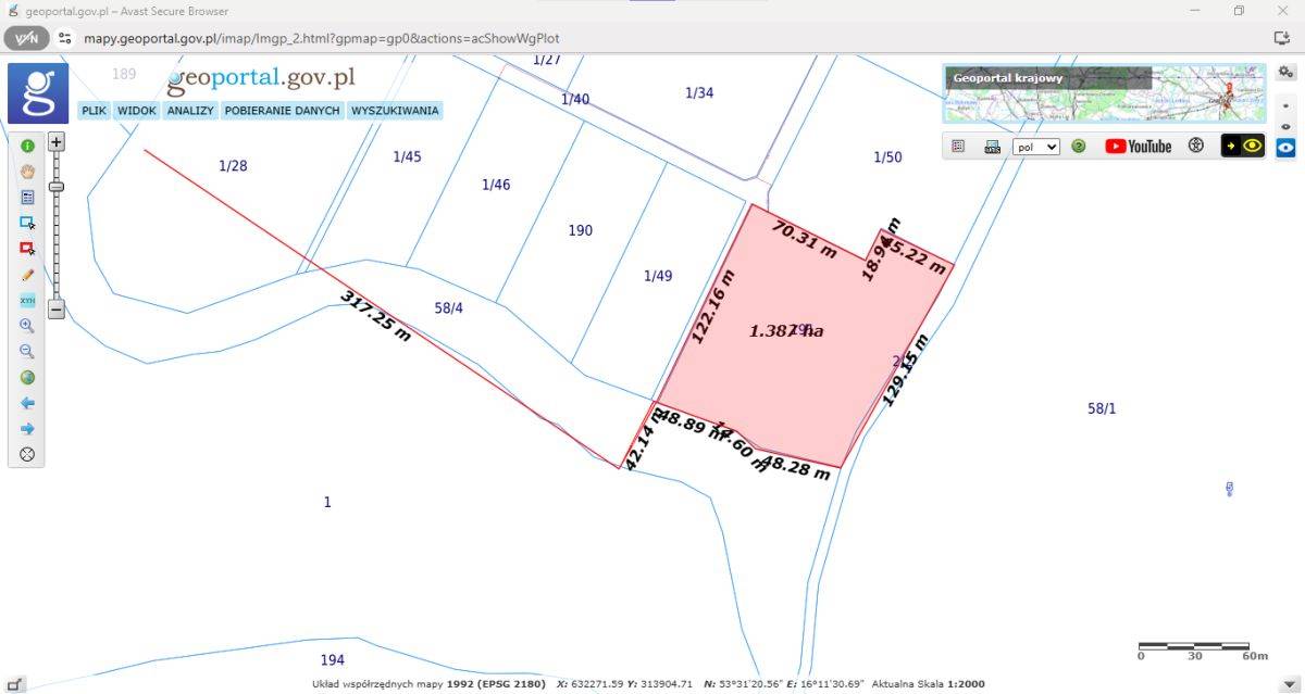 - Powierzchnia: 1,3694 ha (13 694 m²)