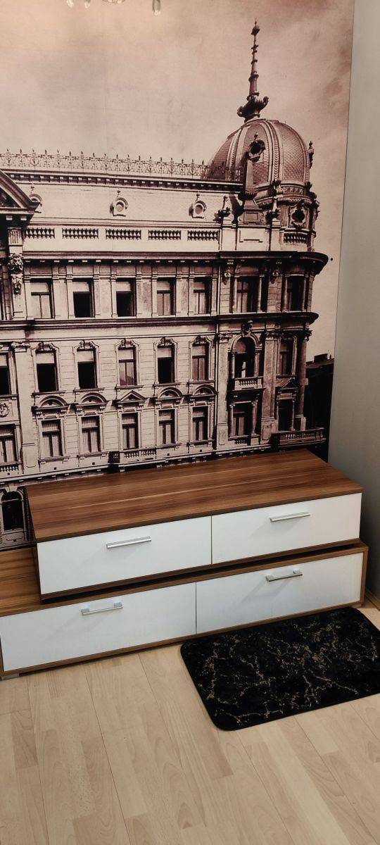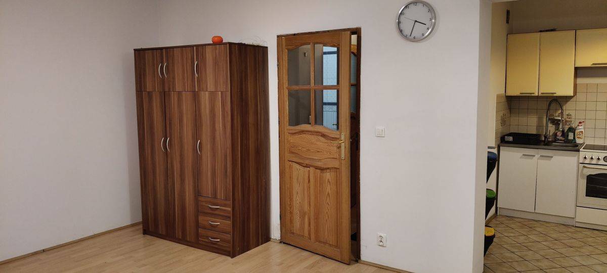 Pokój jest wyposażony w rozkładane łóżko, pojemną szafę, stół oraz cztery krzesła - wszystko, co potrzebne do codziennego komfortu. Kuchnia połączona z pokojem, w pełni wyposażona: nowa lodówka, kuchenka z piekarnikiem, a duże okno zapewnia doskonałe doświetlenie przestrzeni.