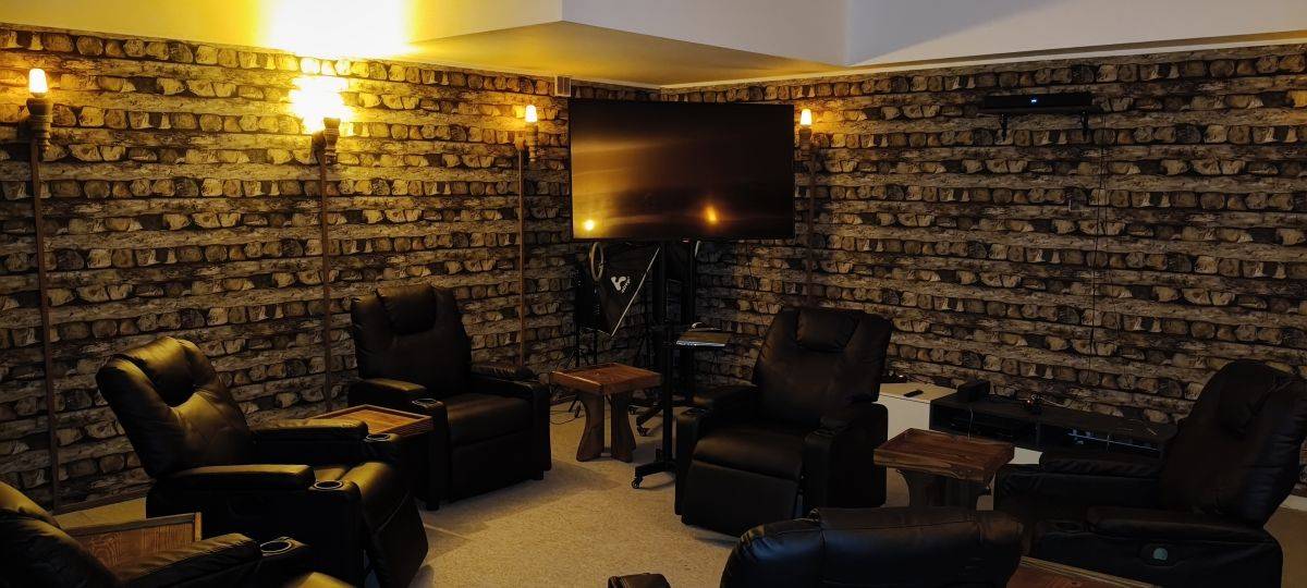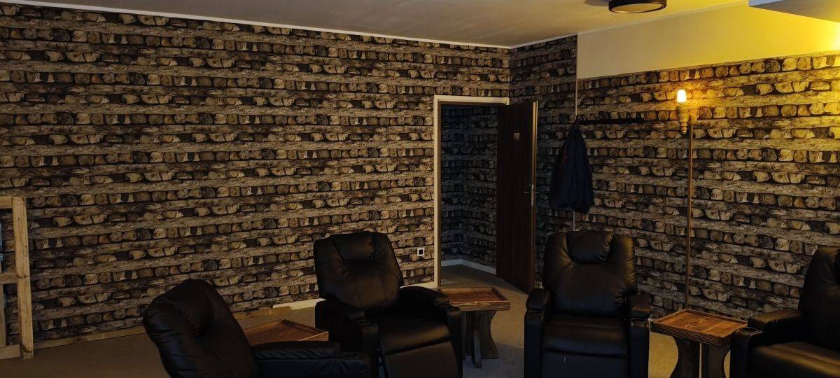 Dobrze oświetlone, wygodne schody prowadzą na poziom-1 składający się z jednego pomieszczenia (40m2),na podłodze gruba wykładzina dywanowa,