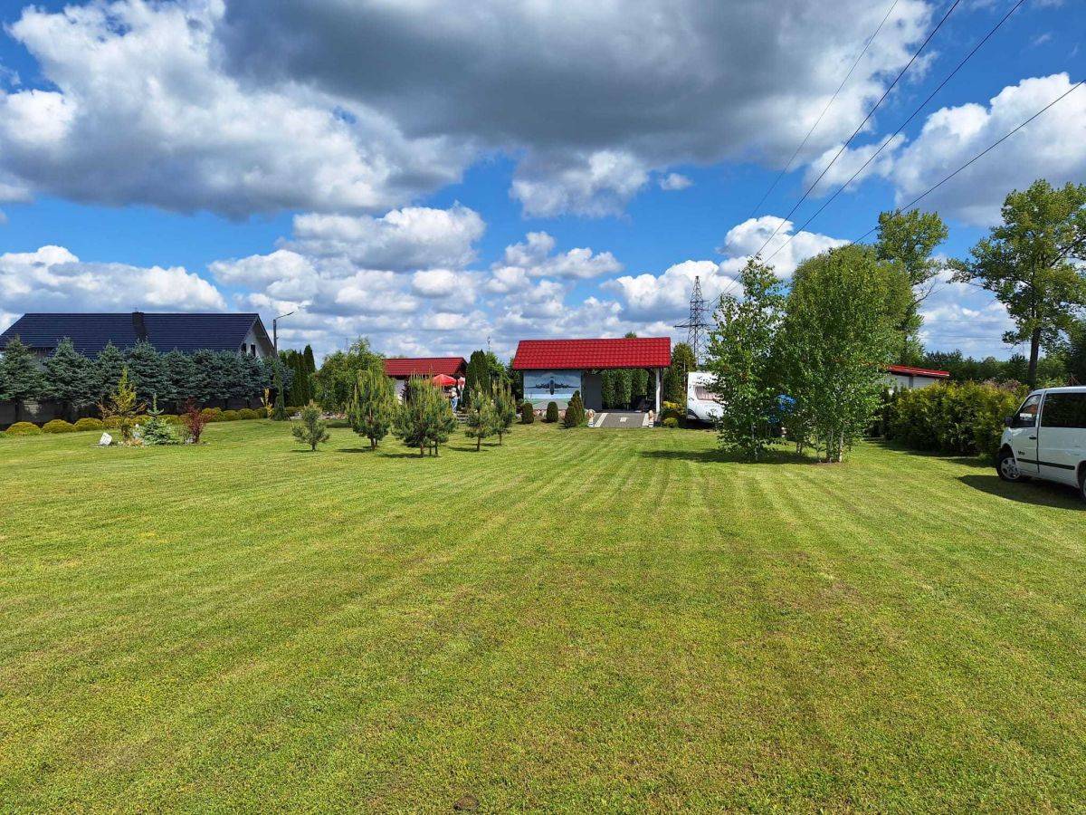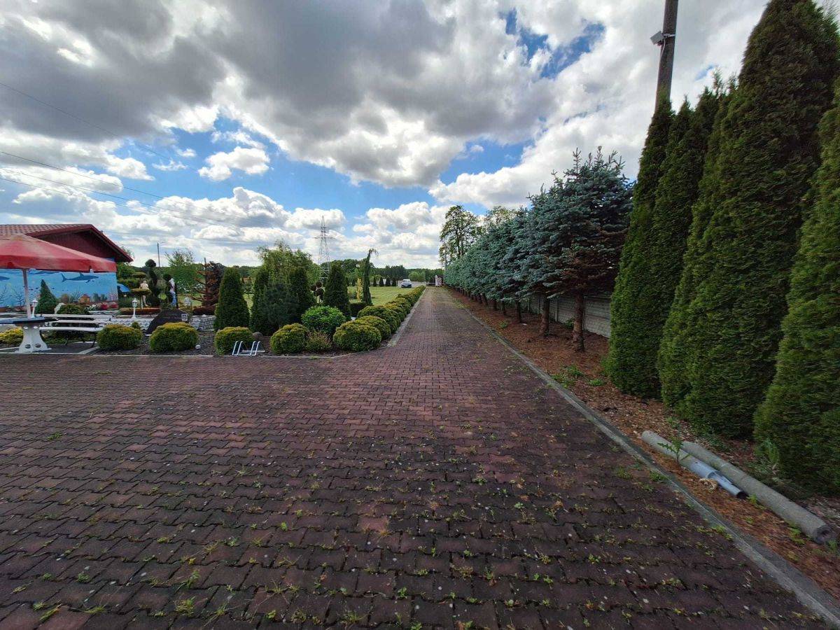 Od frontu działki znajduje się teren zielony. Na całej jej długości znajduje się podjazd z kostki brukowej,prowadzący do elementów zabudowy. Wzdłuż jednej granicy działki przebiega linia wysokiego napięcia.