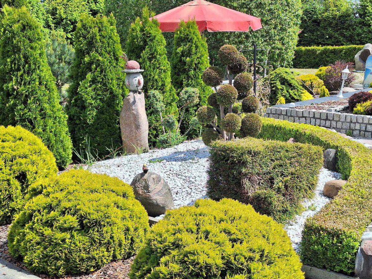 Cała działka jest pięknie zagospodarowana zielenią w postaci drzew, krzewów, kwiatów oraz trawników. Wykonane zostały także elementy małej architektury, takiej jak skalniaki, fontanny oraz figurki,