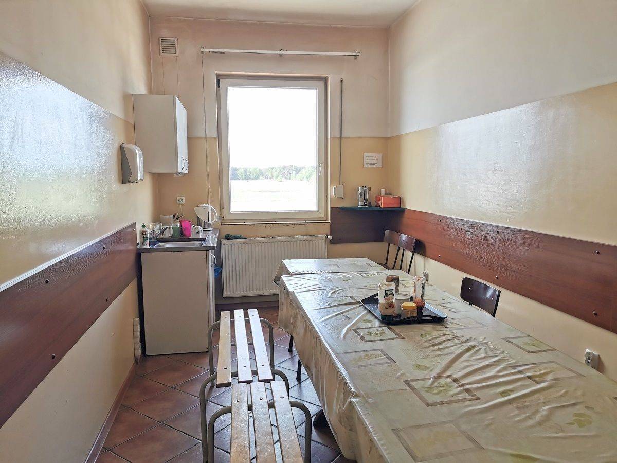 1/ BUDYNEK BIUROWO - USŁUGOWY (WARSZTAT ŚLUSARSKI), wybudowany w r. 2010, o powierzchni użytkowej 737,70 m², murowany, z pustaków żużlobetonowych z dociepleniem gr. 30 cm, stropem Teriva i dachem 2-spadowym o konstrukcji z kratownic stalowych i pokryciem z płyt warstwowych, częściowo 2-kondygnacyjny (w części biurowo - socjalnej) i częściowo 1-kondygnacyjny (w części warsztatowej). W budynku znajdują się następujące pomieszczenia: PARTER: hala warsztatowa (319,6 m²), pomieszczenie ekspedycji (39,1 m²), lakiernia (13,5 m²), WC (3,2 m²), korytarz (13,7 m²), magazyn lakierów (3,9 m²), biuro (10,7 m²), szatnia czysta (14,5 m²), umywalnia (15,0 m²), szatnia brudna (15,0 m²), magazyn podręczny (5,8 m²), jadalnia 21,2 m²), kotłownia (29,8 m²), magazyn blach i rus (35,9 m²), klatka schodowa (6,4 m²), PIĘTRO: biura i jadalnia (190,4 m²);