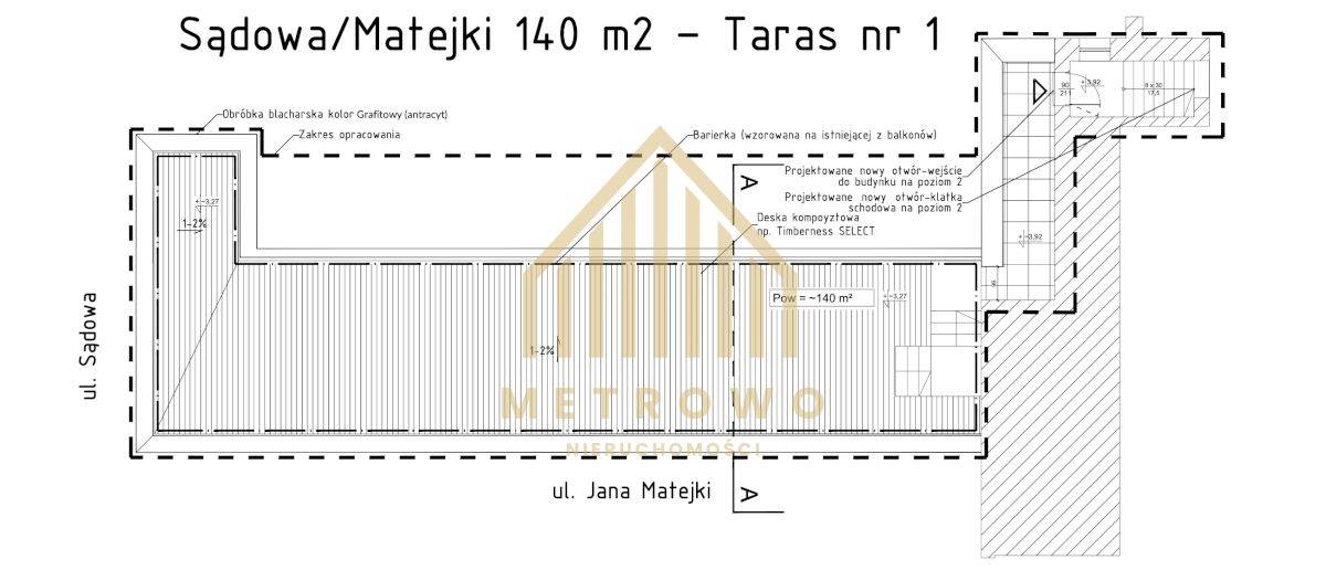 Dodatkowo z antresoli taras o powierzchni 140m2 z widokiem na Dworzec ( widoczny na wizualizacjach oraz rzutach w zdjęciach oferty )