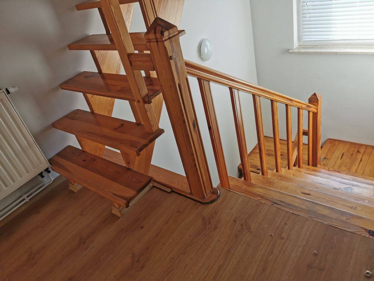 W budynku mieszkalnym znajdują się następujące pomieszczenia: PARTER: hall - i klatka schodowa (8,5 m²), pokój dzienny z aneksem kuchennym (31,5 m²), pokój (27,7 m²), łazienka (8,0 m²), garderoba/skrytka (4,9 m²); PIĘTRO: 3 pokoje (21,2 m², 20,3 m² i 10,5 m²), kuchnia (8,5 m²), łazienka (4,6 m²) oraz korytarz (9,5 m²).