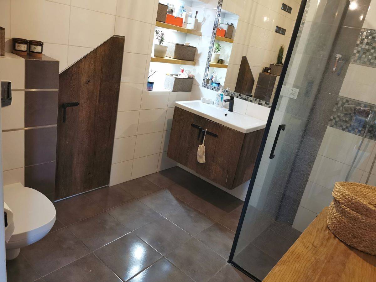 BUDYNEK JEST WYPOSAŻONY W INSTALACJE: ELEKTROENERGETYCZNĄ (+ siła w garażu), WODNĄ (SIEĆ GMINNA), KANALIZACJI SANITARNEJ (DO SIECI GMINNEJ), KLIMATYZACJĘ I CENTRALNE OGRZEWANIE (POMPA CIEPŁA, FOTOWOLTAIKA - 21 PANELI NA DACHU GARAŻU, 6 kW, OGRZEWANIE PODŁOGOWE - CAŁY PARTER BEZ JEDNEGO POKOJU ORAZ ŁAZIENKA NA PODDASZU, DODATKOWO: KOMINEK Z PŁASZCZEM WODNYM PODPIĘTY DO BUFORA CIEPŁA). BUDYNEK JEST PO TERMOMODERNIZACJI WYKONANEJ W R. 2024 W RAMACH PROGRAMU CZYSTE POWIETRZE.