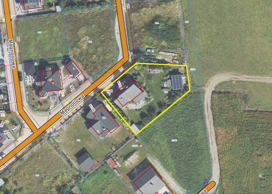 NIERUCHOMOŚĆ OBEJMUJE DUŻĄ, USTAWNĄ DZIAŁKĘ O POWIERZCHNI 1132 m², O KSZTAŁCIE PIĘCIOKĄTNYM i wymiarach około 52 m szerokości frontu x od 13,5 do 30 m głębokości. DZIĘKI SZEROKIEMU FRONTOWI DZIAŁKA POSIADA DWA WJAZDY: JEDEN UTWARDZONY PRZY BUDYNKU MIESZKALNYM ORAZ DRUGI - NIEUTWARDZONY - DO GARAŻU WOLNOSTOJĄCEGO.