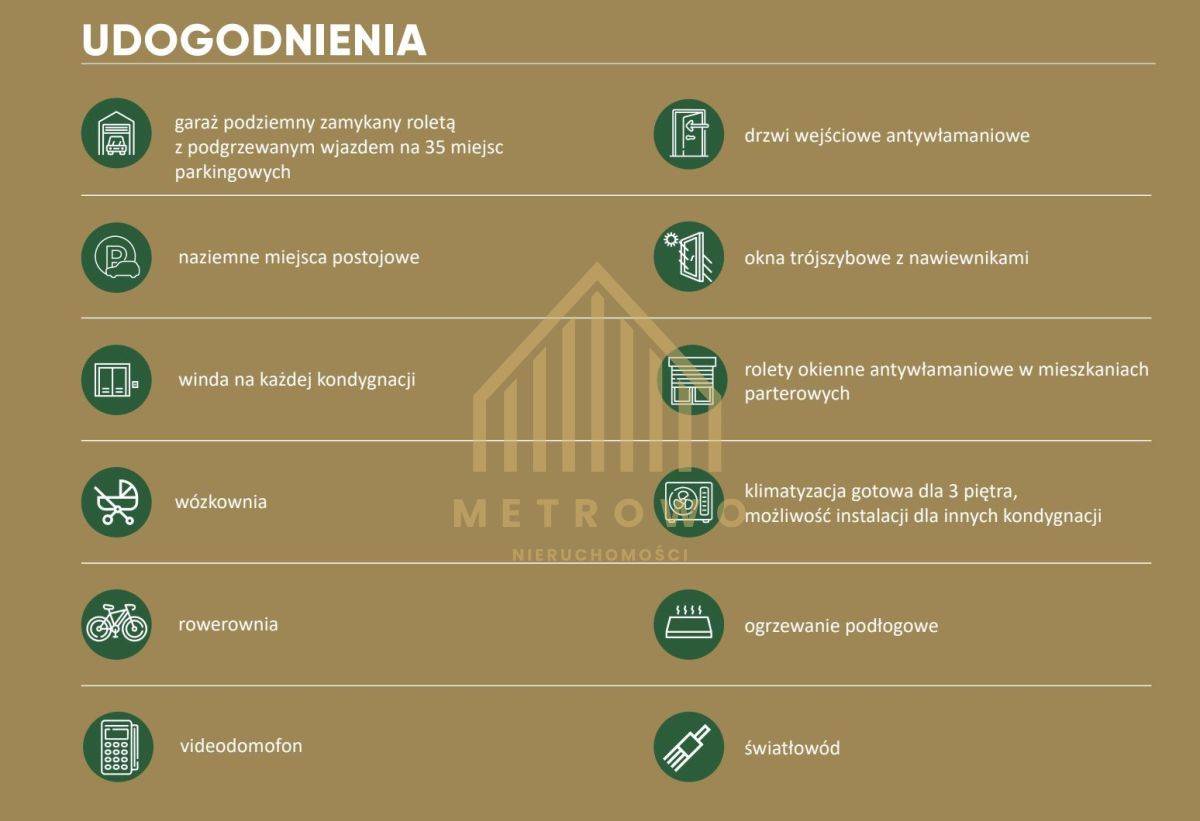 - budynki z windą oraz miejscami parkingowymi