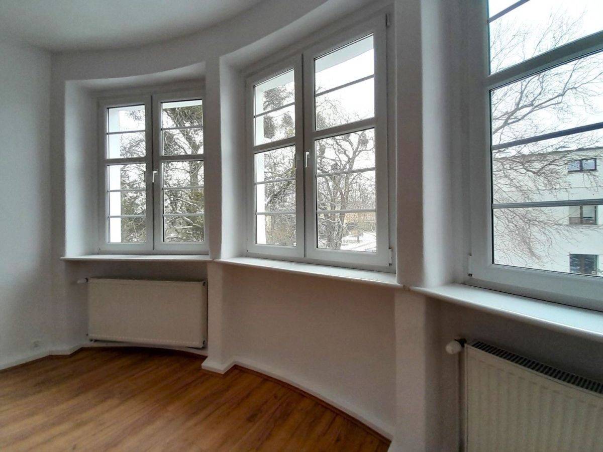 dwa pokoje 32m2 i 14m2 oraz kuchnia 5m, łazienka 4m i hol. Wysokość pomieszczeń 3.00mb. Pokoje wukładzie niezależnym, z dużymi pięknymi oknami.