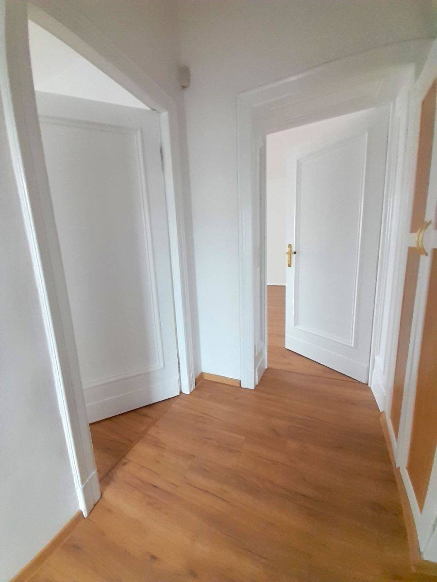 Podłogi panele, drzwi wewnętrzne pełne, ściany w gładzi w spokojnym kolorze,łazienka w glazurze z kabiną prysznicową, w kuchni meble, lodówka.