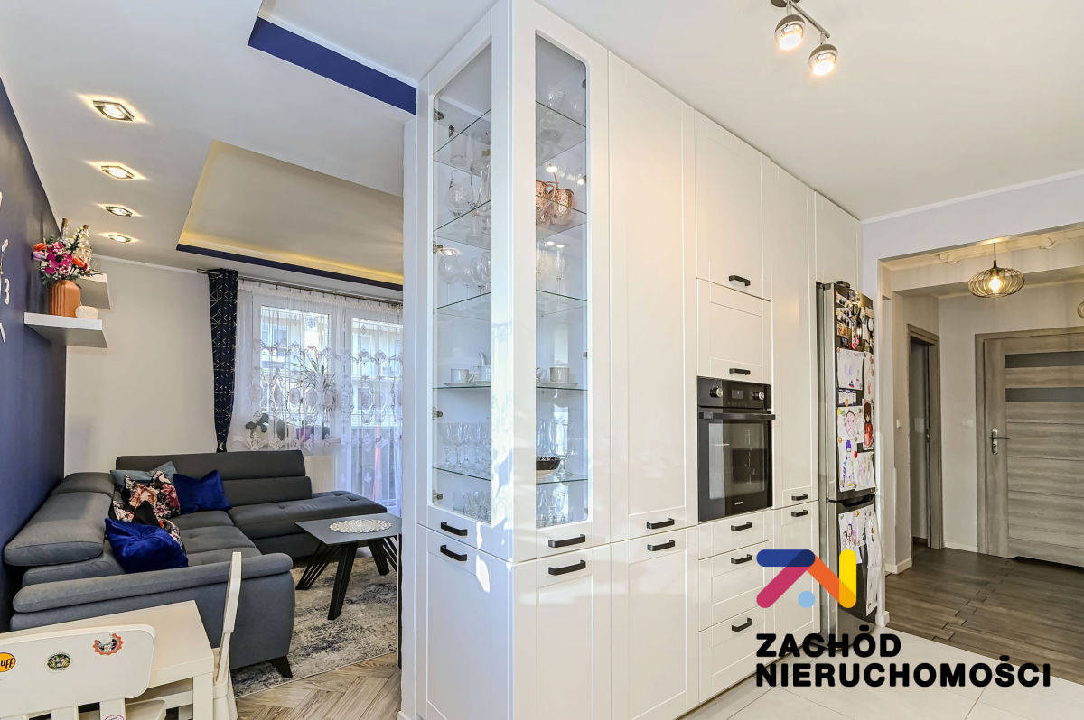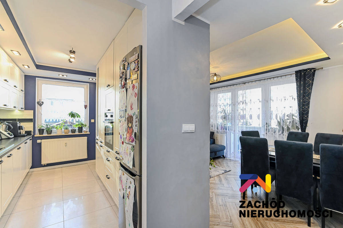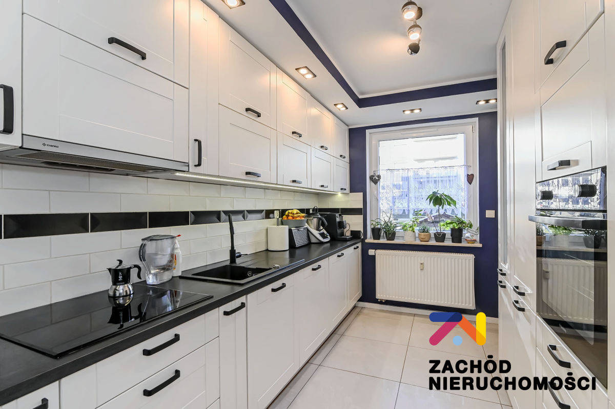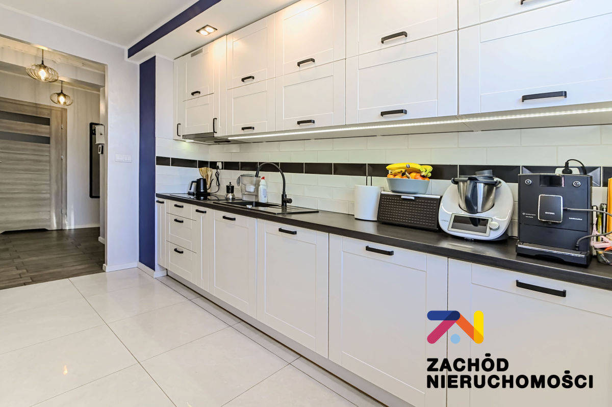 Funkcjonalna kuchnia jest w pełni wyposażona w wysokiej klasy sprzęt AGD: płytę indukcyjną, piekarnik, lodówkę, zmywarkę oraz okap, co czyni codzienne gotowanie prawdziwą przyjemnością.