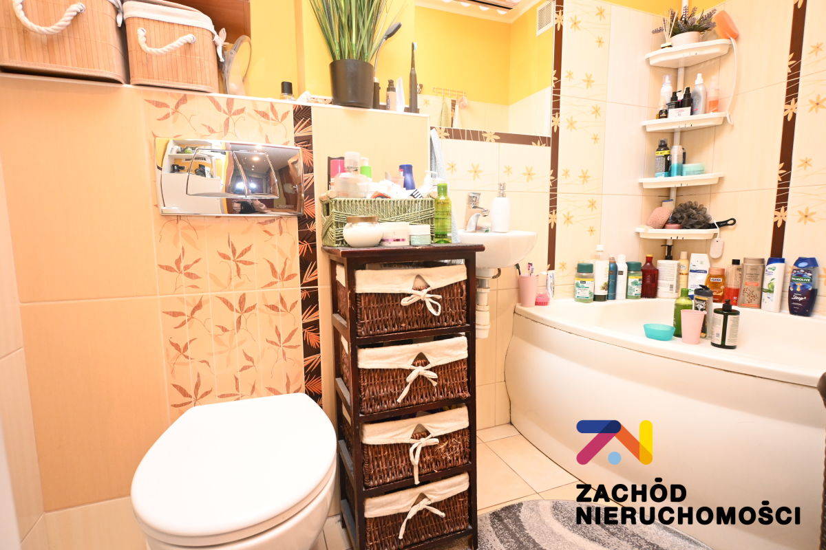 Mieszkanie ciepłe jasne i ustawne. W zależności od pomieszczenia ścianygładzone i malowane, na części ścian tapeta cegła ozdobna. Na podłogach panele,w łazience oraz kuchni płytki