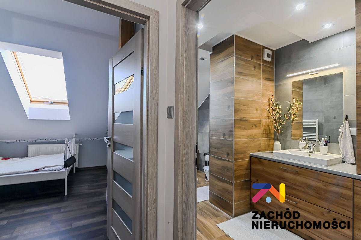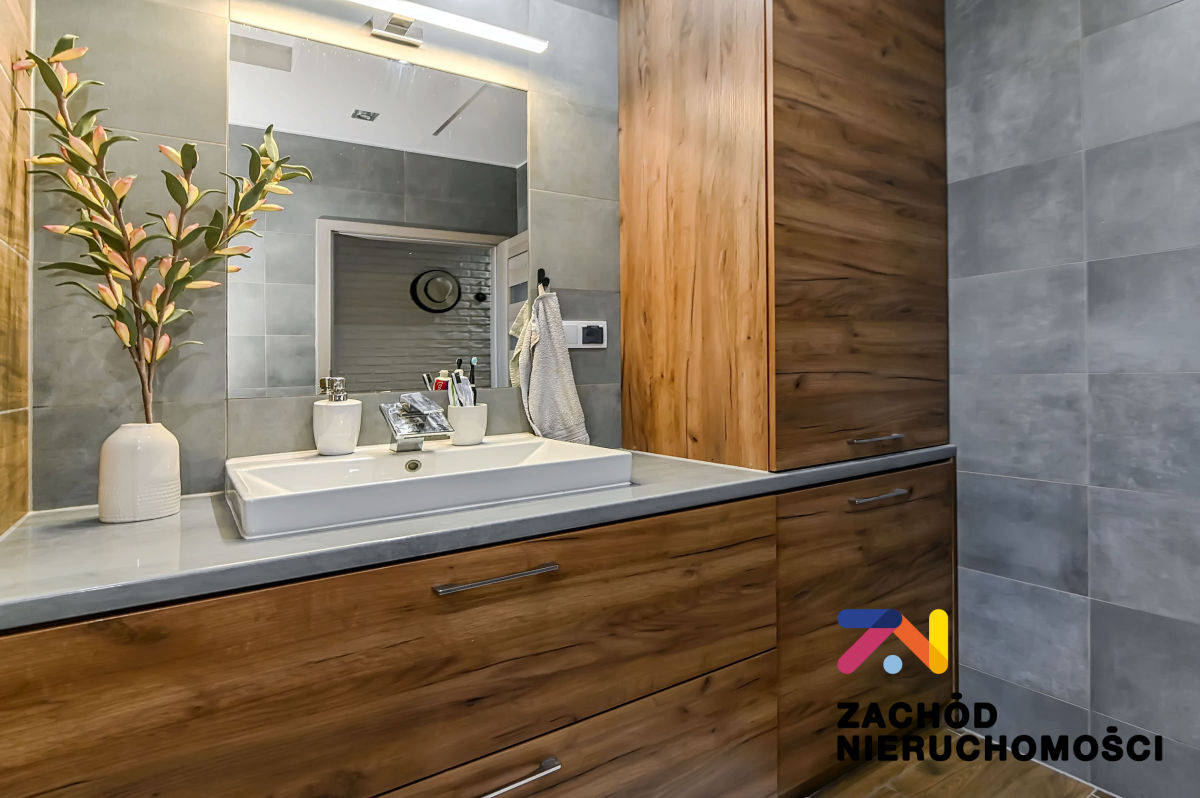 - Główna łazienka - przestronna, z wanną i licznymi schowkami, gwarantująca komfort codziennego użytkowania.