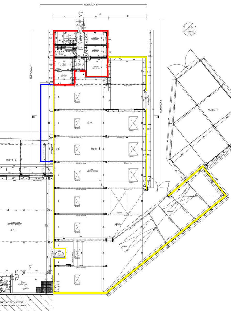 Hala magazyn/produkcja wraz z pomieszczeniami biura/socjal.Powierzchnia hali ok 1.227 mkw, dodatkowo biura/social ok 115 mkw.