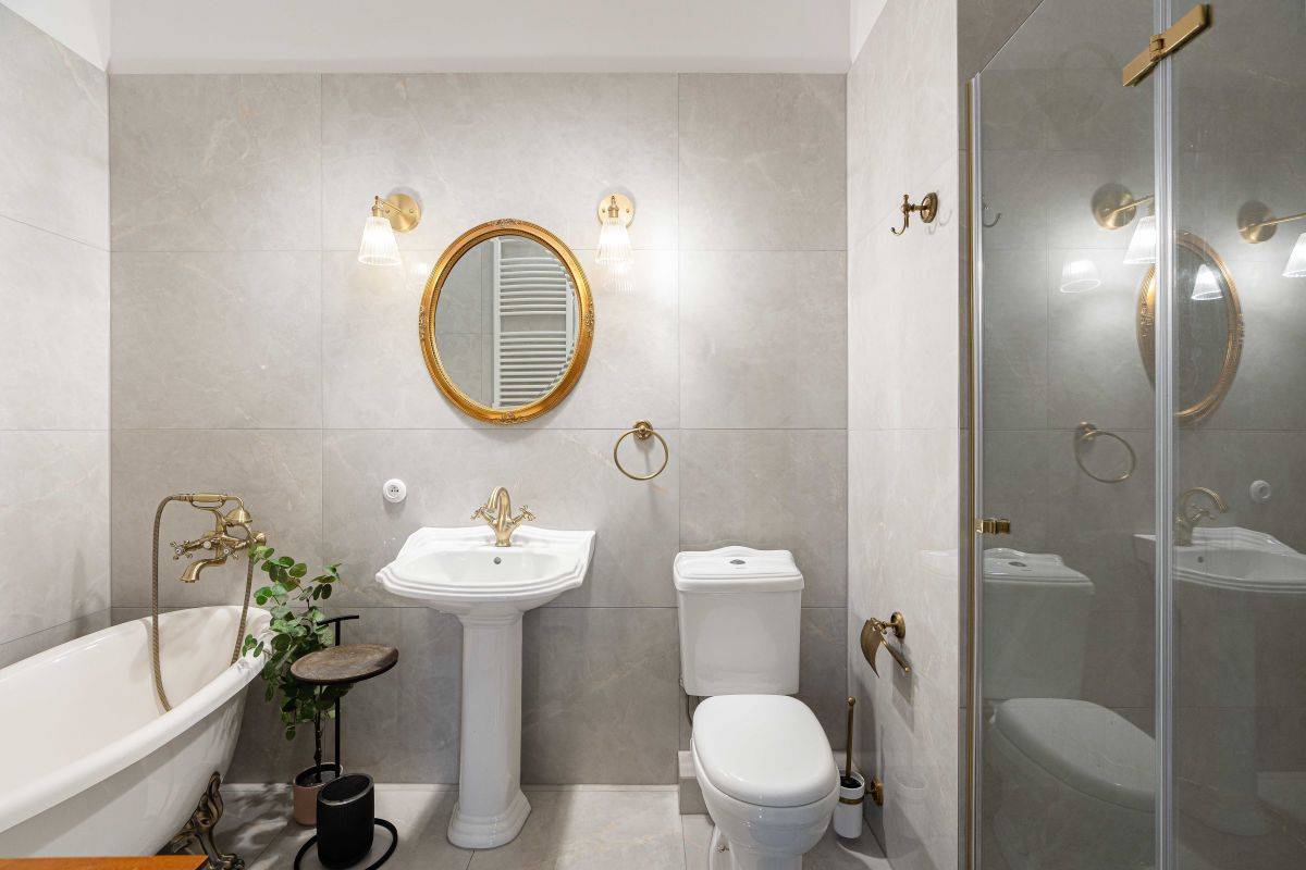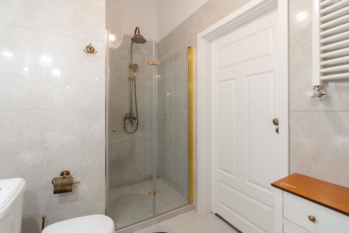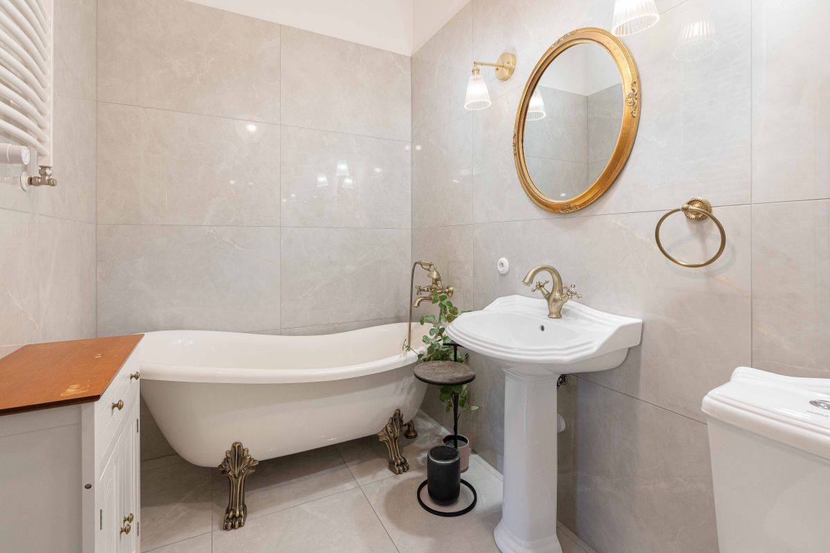 - łazienka wykończona kamieniem