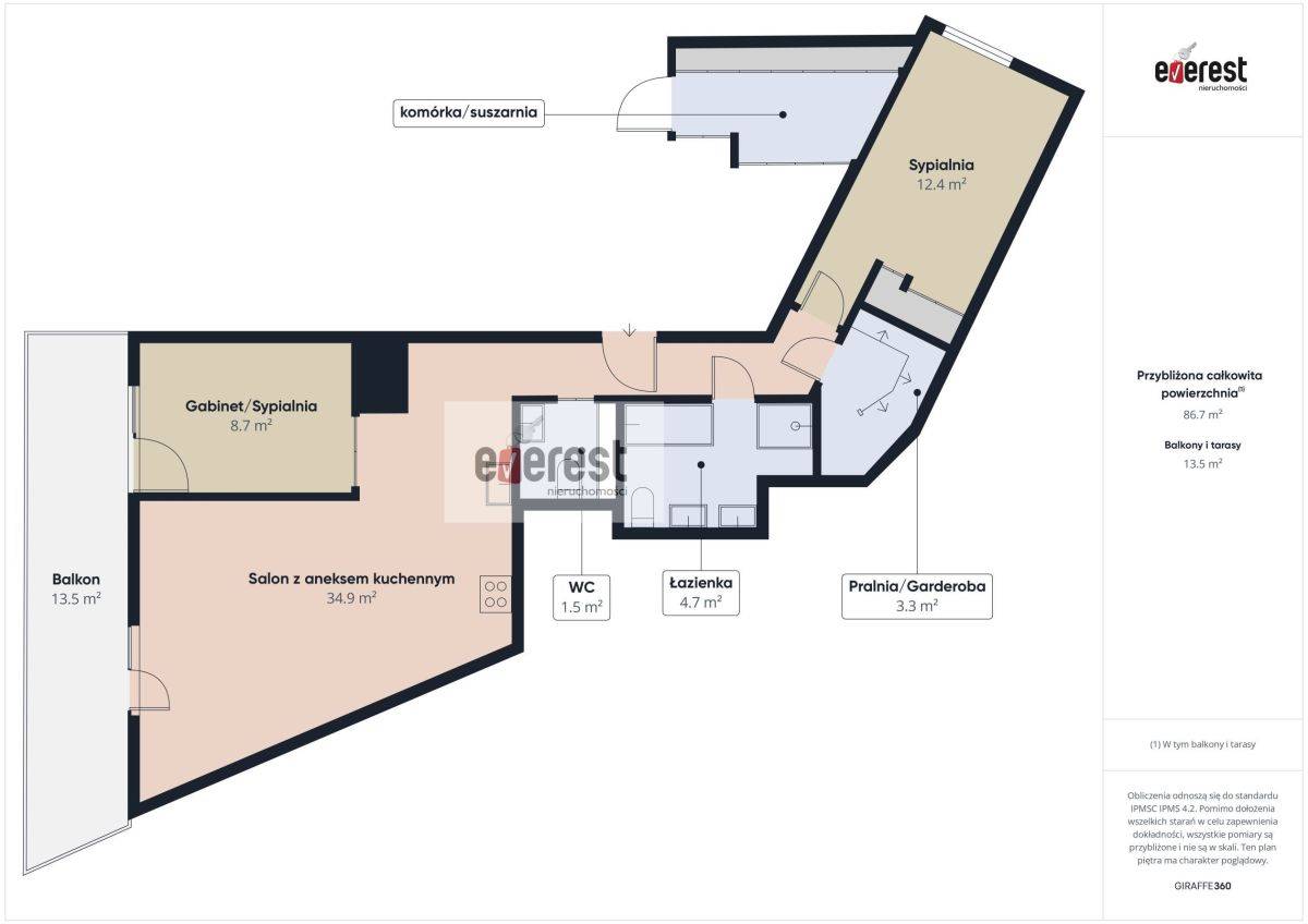 Mieszkanie 69.48m² + komórka bezpośrednio przy mieszkaniu 8.05 m² + taras 12.84 m²