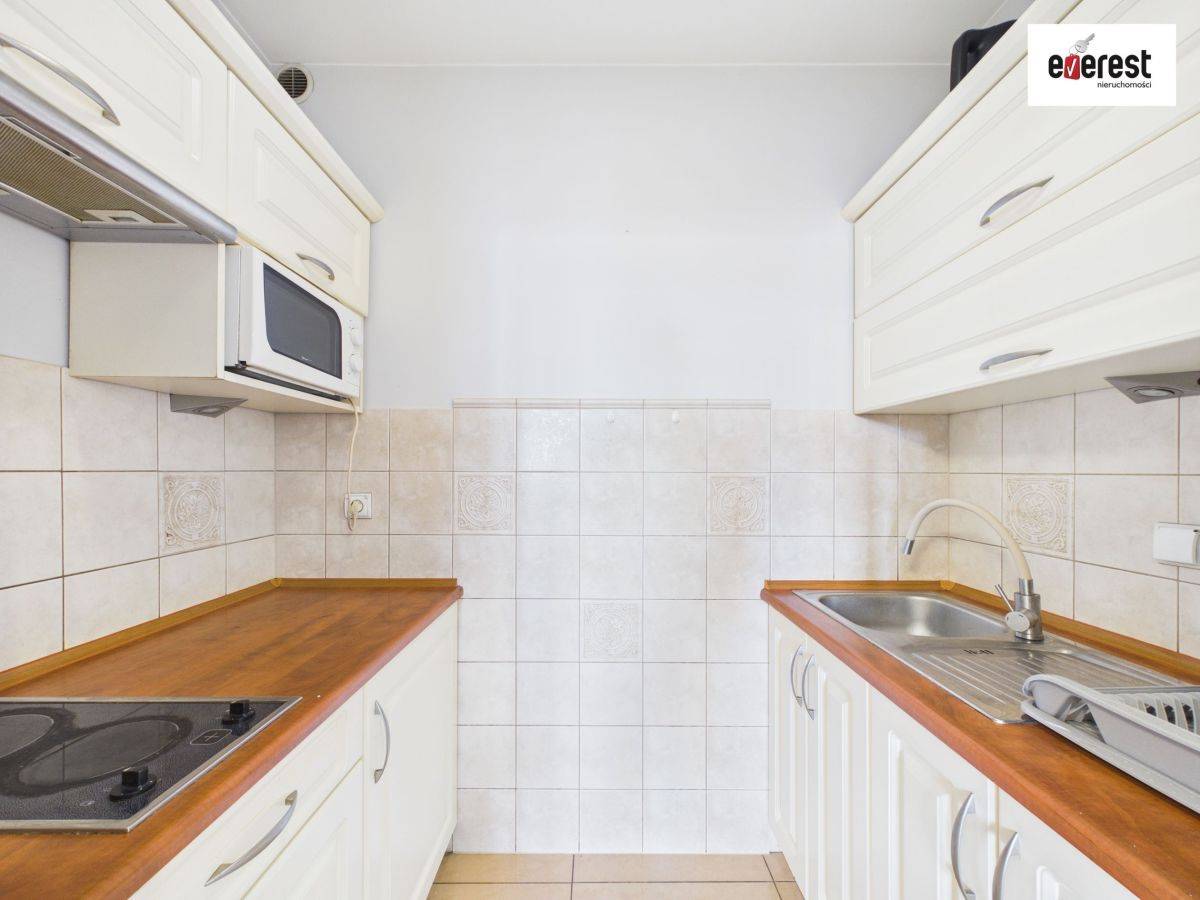 Mieszkanie jasne, w neutralnych kolorach. Aneks kuchenny w zabudowie, łazienka w płytkach z kabiną prysznicową. Sprzedaż z kompletem mebli i AGD (zgodnie ze zdjęciami) - idealne rozwiązanie dla osób, które cenią wygodę i brak dodatkowych kosztów na start.