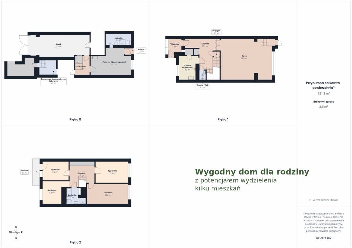 ✔ możliwość podziału na 3-4 mieszkania