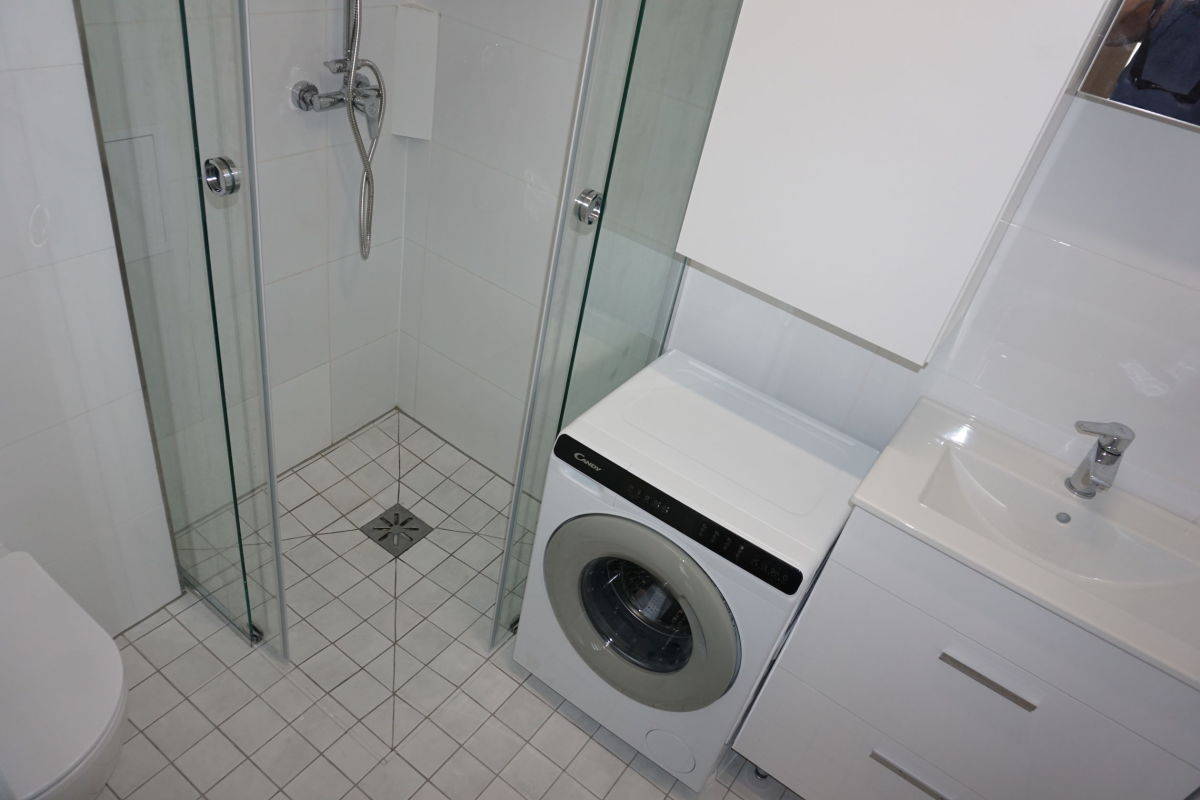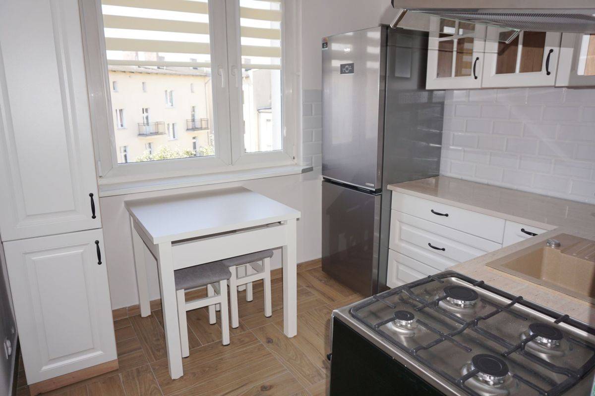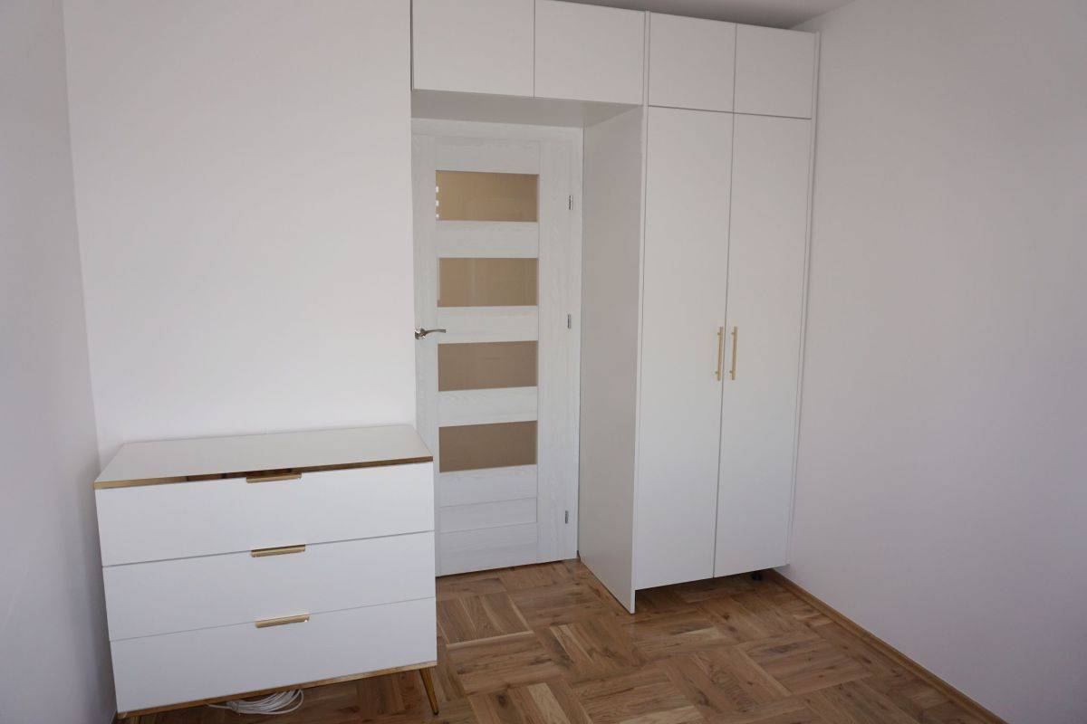 Kuchnia umeblowana z kuchenką gazową, okapem i lodówką. Łazienka z prysznicem i pralką. W pokojach i przedpokoju pojemne szafy. W dużym pokoju ładna sofa i stolik.