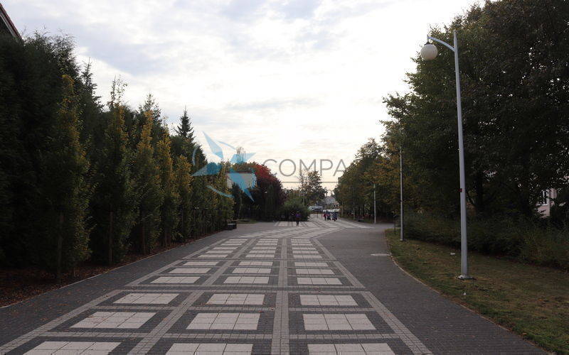 Liceum i Gimnazjum EKOS, plac zabaw,boisko sportowe, Biedronka,Netto,pętla autobusowa, a także basen, lodowisko, kręgielnia,korty tenisowe,wypożyczalnia sprzętu pływającego (łódki,kajaki) ,