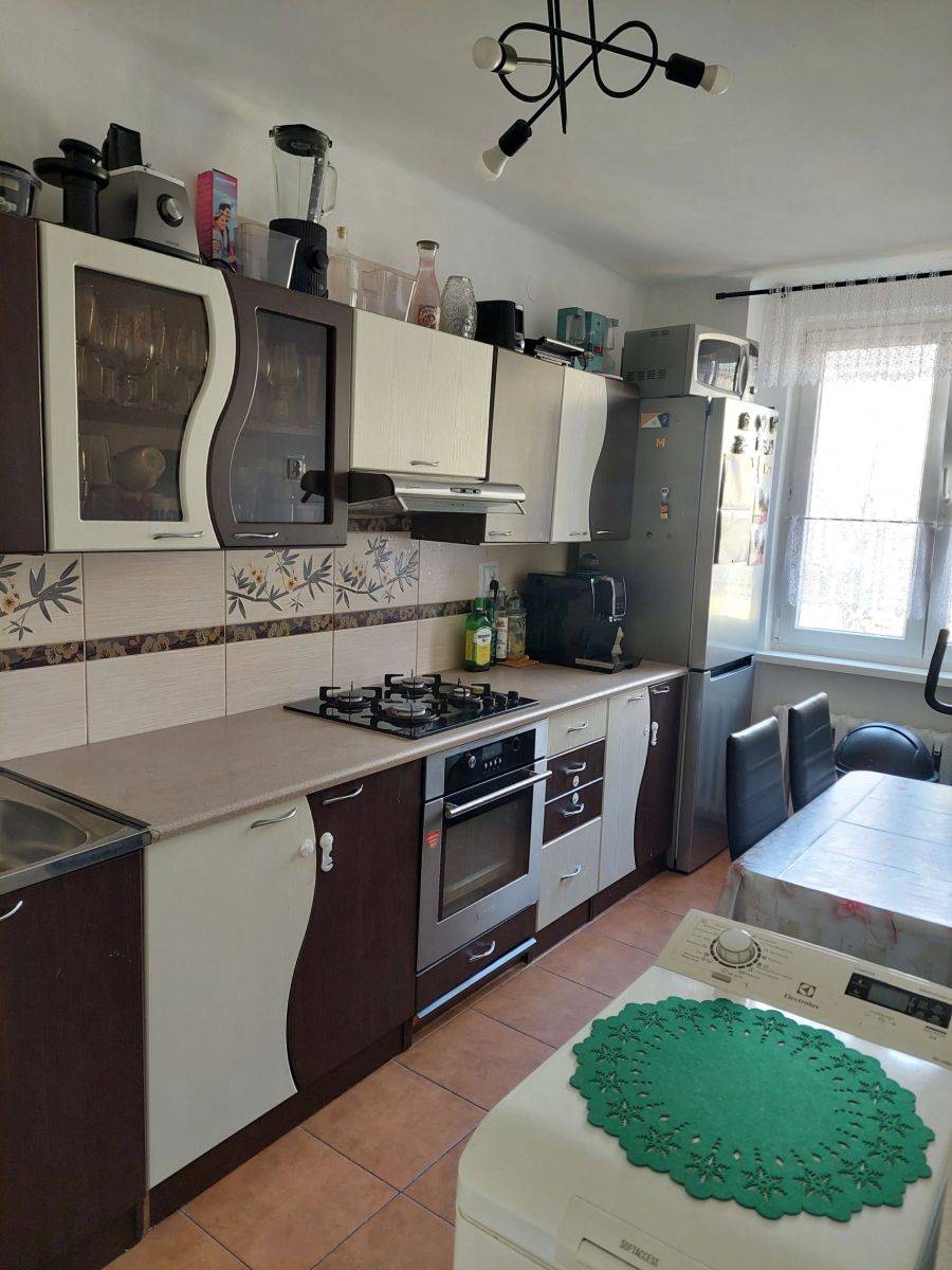 W cenie pozostają meble kuchenne wraz ze sprzętem AGD: pralka, lodówka, okap kuchenny, piekarnik elektryczny, płyta gazowa na butlę oraz szafa przesuwna w przedpokoju.