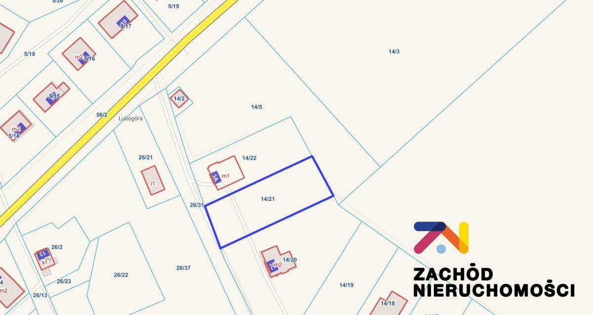 Na sprzedaż działka budowlana o powierzchni 1047m2w miejscowości Lubogóra, położona poza zwartą zabudową.