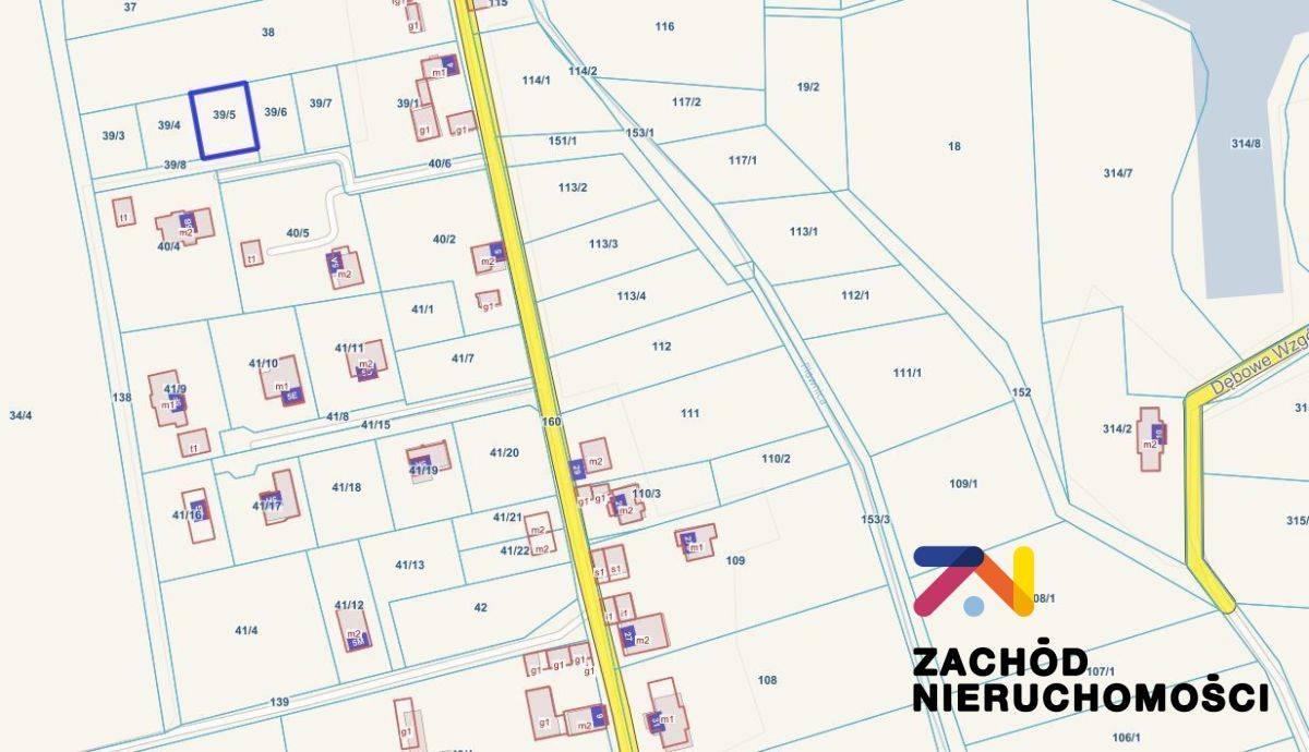 Działka poza zwartą zabudową wiejską w kształcie przybliżonego kwadratu front szerokość 20m x długość 25 m. Dojazd przez dz.nr 138. Wpisana bezpłatna służebność w prawie przejścia i przechodu przez dz.nr 39/8