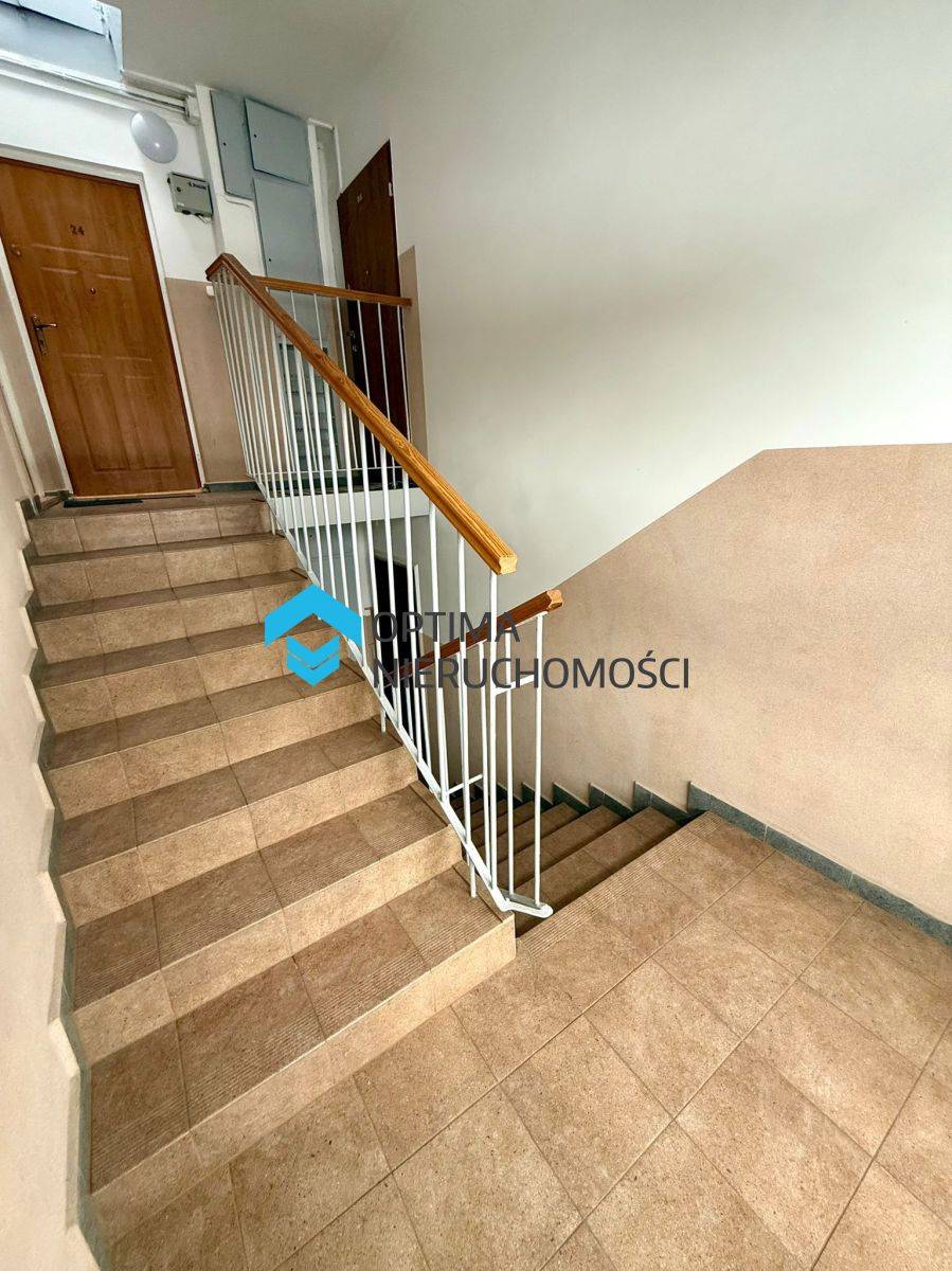Budynek jest zadbany i po termomodernizacji, dach został wymieniony, a klatka schodowa jest czysta i schludna.
