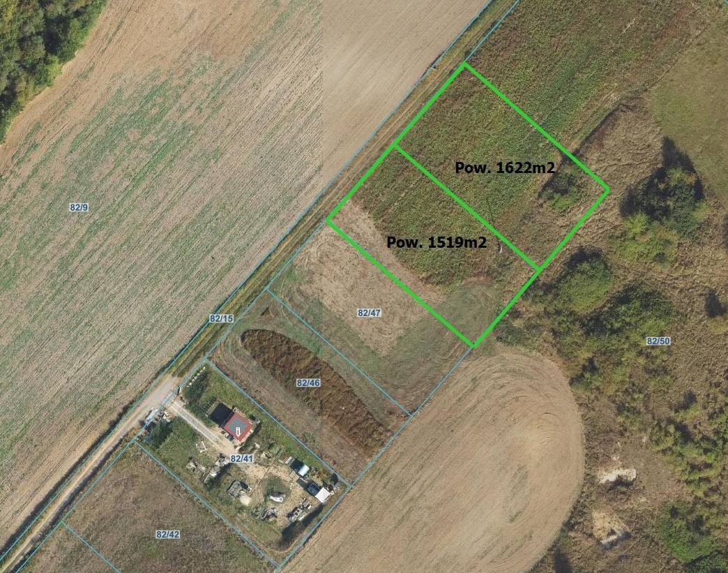 Grabowiec - oferujemy Państwu do sprzedaży 2 działki budowlane o pow. 1519m2 i 1622m2.Informacje o działce 1519m2: