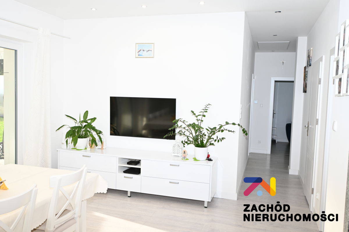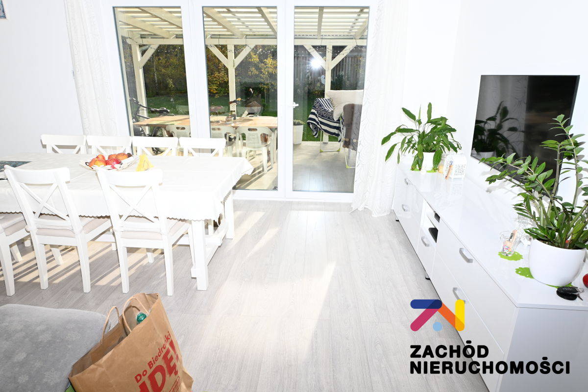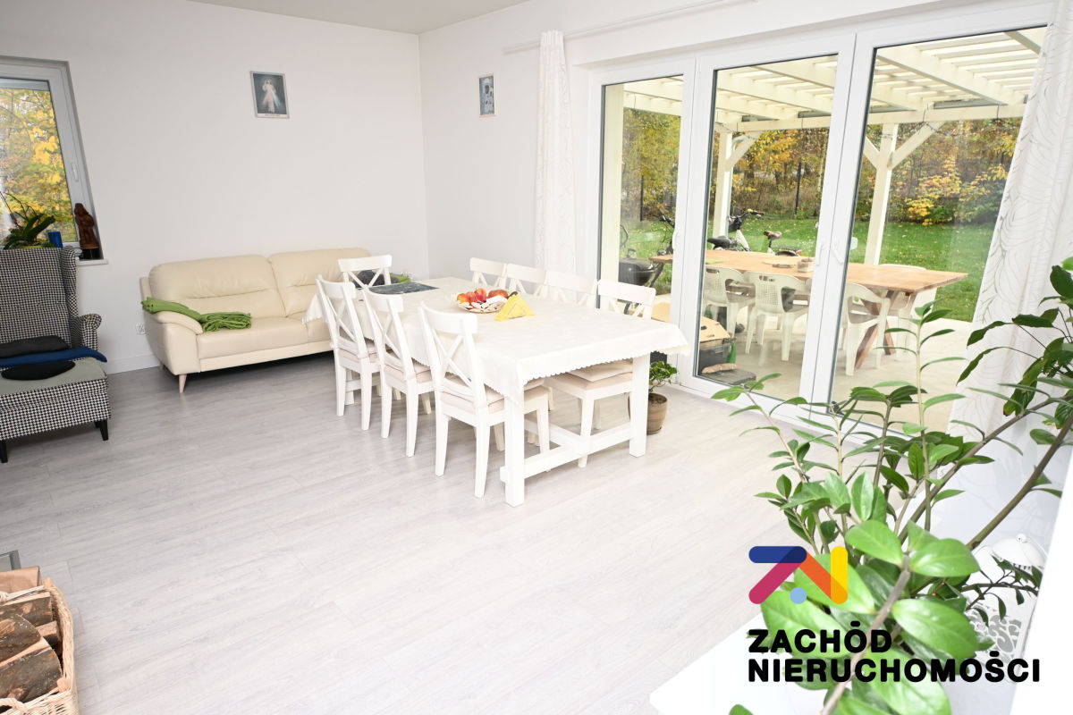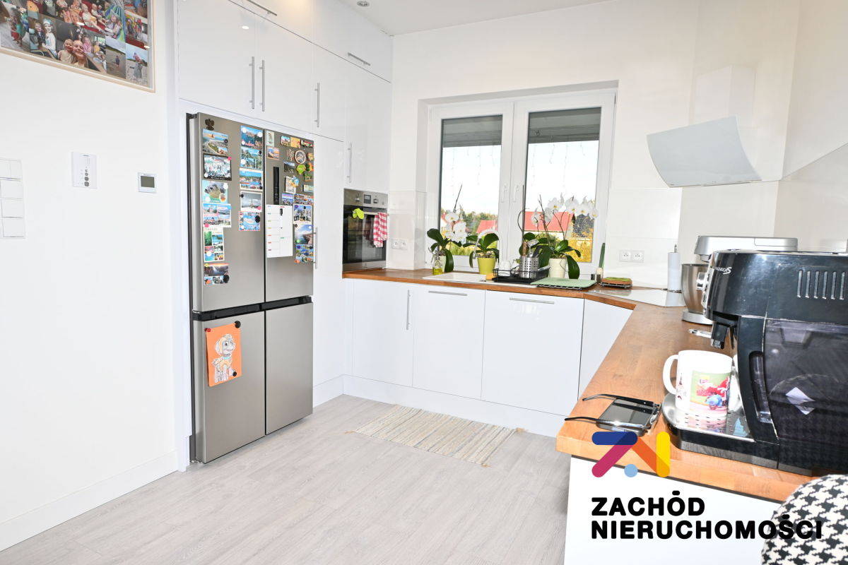 - Salonz aneksem kuchennym łącznie 29,53m2 . Niesamowitym atutem tej przestrzeni wypoczynkowej jestduże cztero-taflowe przeszklenie na część ogrodową i zadaszony taras oraz zabudowany kominek, Kuchnia posiada pełną zabudowę w kolorze białym, w tym płyta indukcyjna, lodówka, zlew i zmywarka. Blat w kolorze ciepłego drewna.