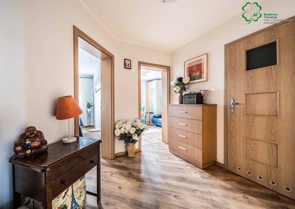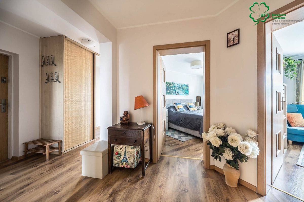 • 3-pokoje, w tym salon z wyjściem na uroczy balkon z widokiem na osiedlowy, mały park