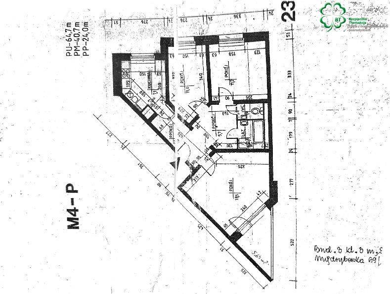 MIESZKANIE- o pow. 64,7m 2 o nietypowych kształtach zarówno pokoi jak i balkonu zyskując przez to na atrakcyjności, przestrzeni i funkcjonalności.