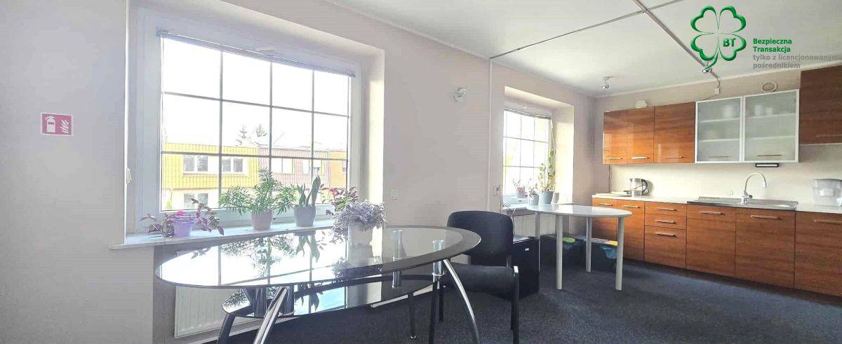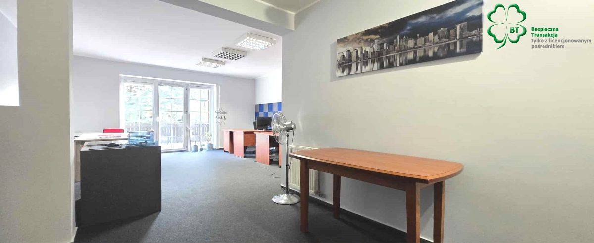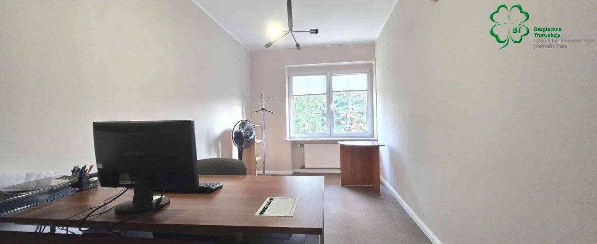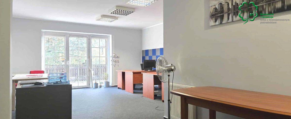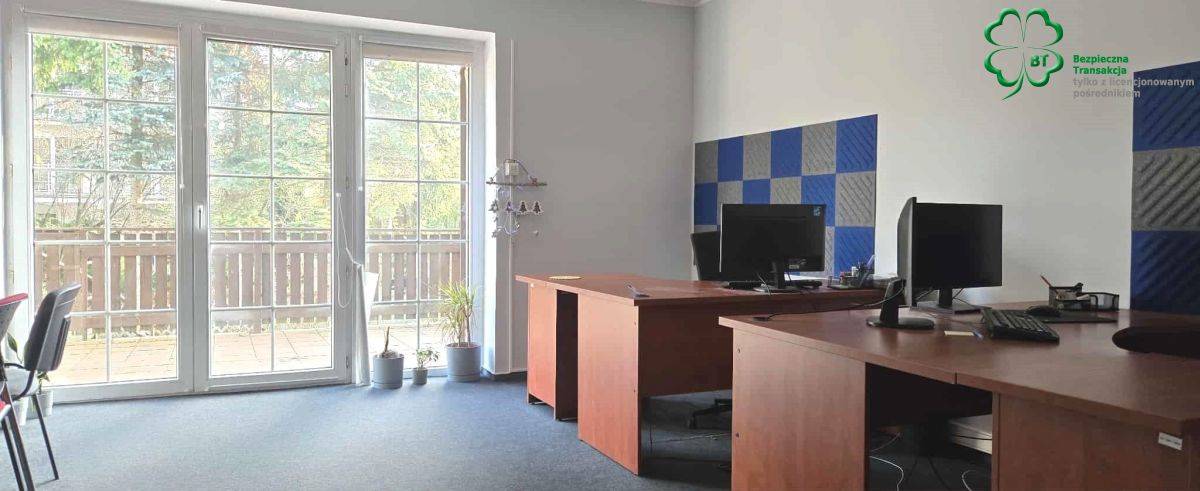 pow. około 60 m2 , duże pomieszczenie biurowe z wyjściem na taras z widokiem na zieleń i ogród oraz 1 gabinet i wc.