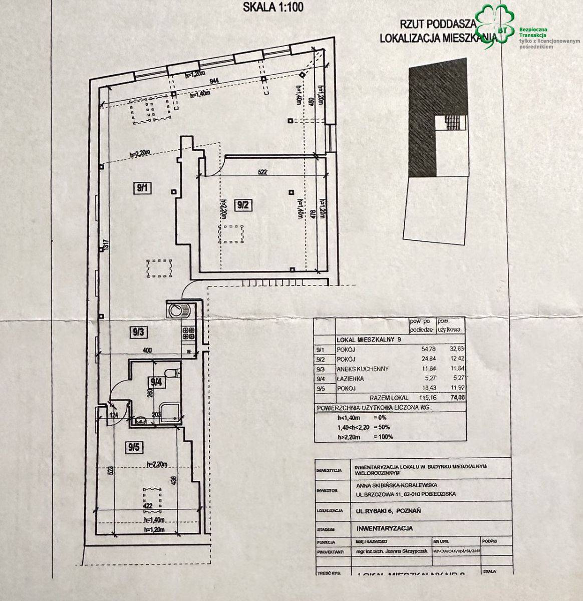 ▪ pow.użytk. 74m2 (w obrysie podłogi 115,16m2)