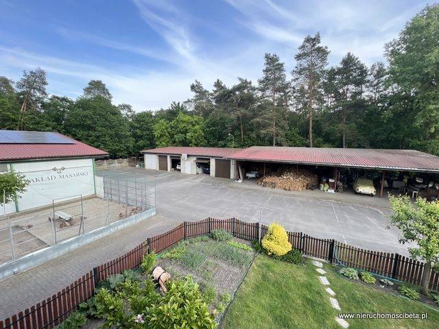 Garaż: 139,70m2 murowany pokryty blachą, brama podnoszona, miejsca parkingowe na 2 samochody osobowe oraz 2 busy.