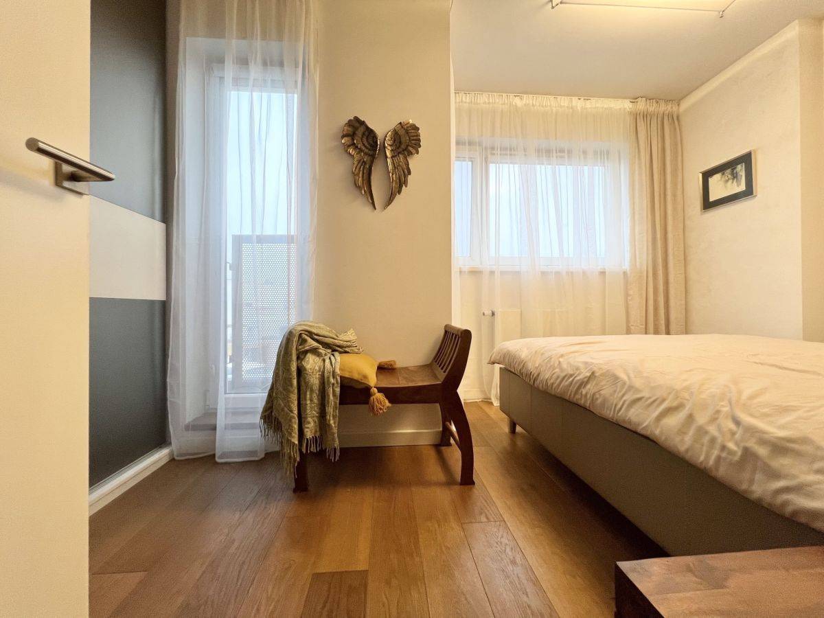 - trzy niezależne pokoje (7,66 m2; 10,39 m2; 10,81 m2), główna sypialnia z obszerną szafą w zabudowie wraz z oświetleniem led (Komandor, system Heliodor),