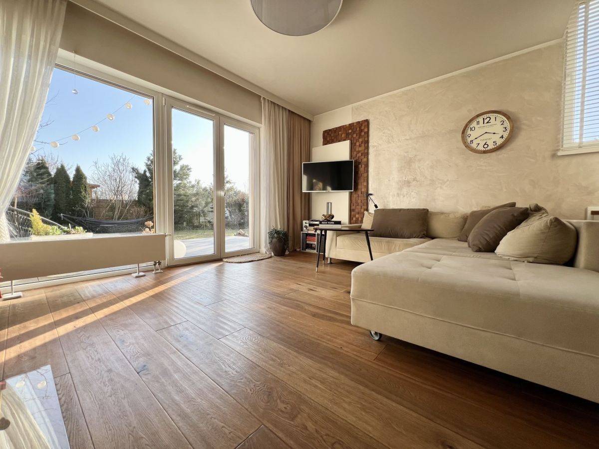 Oferuję skrajny segment szeregowca z zagospodarowanym ogrodem w Dąbrówce k. Poznania. Budynek zakupiony od dewelopera (LINEA) w roku 2016 r., urządzony z dbałością o szczegóły i z zastosowaniem materiałów wysokiej jakości.Budynek typu PIANO o powierzchni 82 m2 został zbudowany w technologii tradycyjnej, z bardzo funkcjonalnym układem, charakteryzuje się niskimi kosztami eksploatacji (rachunki do wglądu). Do budynku poza wiatą garażową przynależą dwa prywatne miejsce parkingowe usytuowane bezpośrednio przed wejściem oraz z boku posesji.
