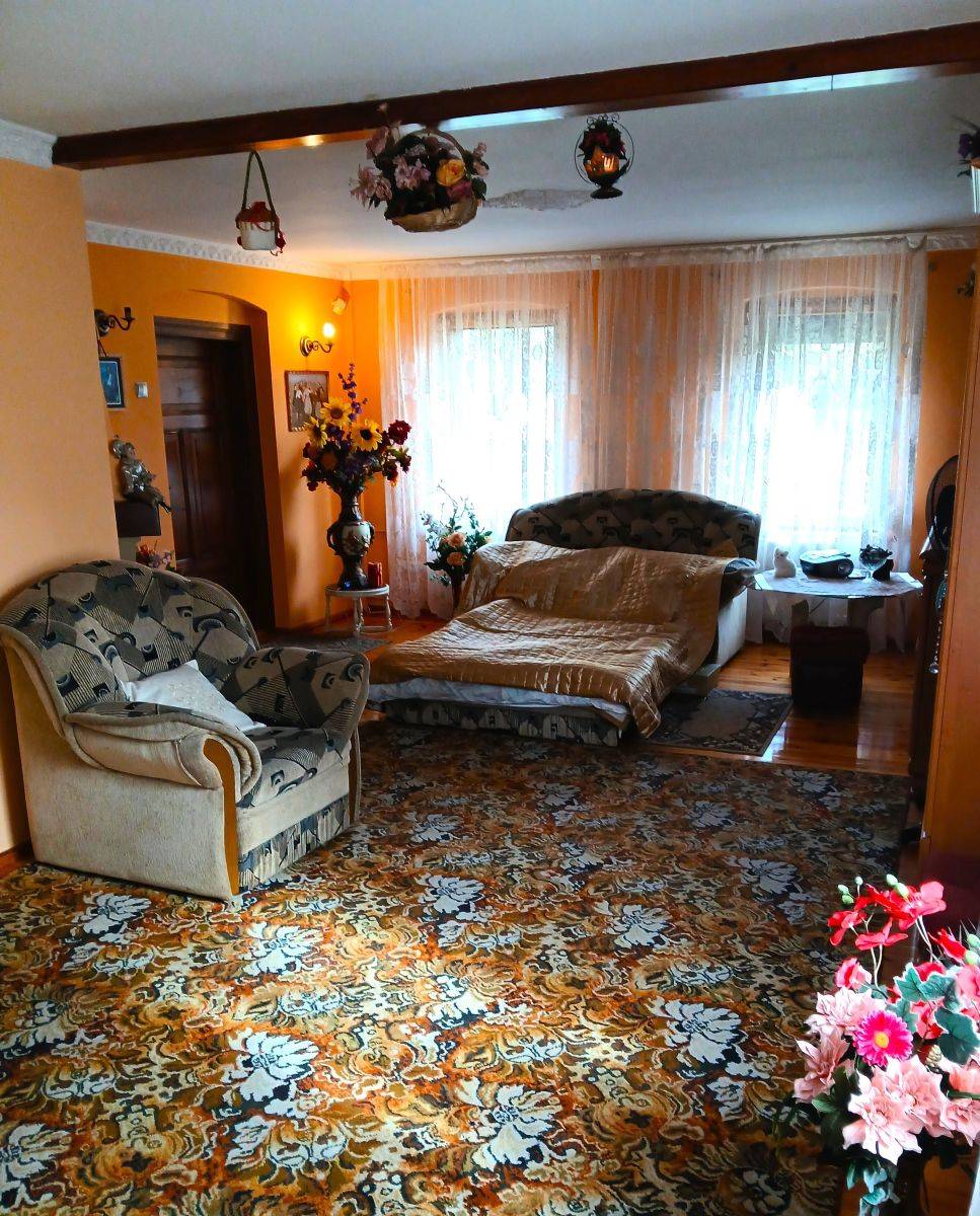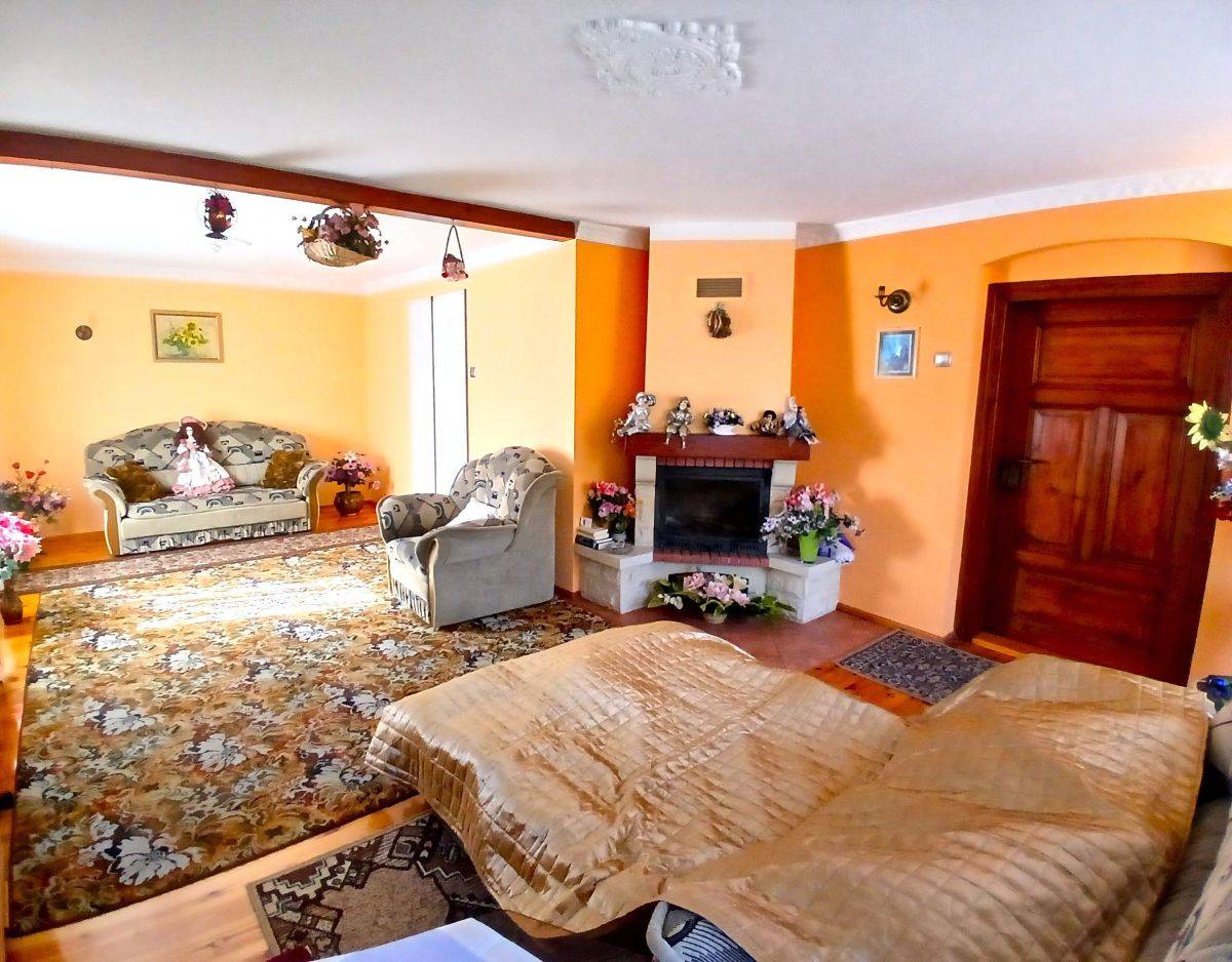 Solidna konstrukcja domu, wybudowanego z najwyższą starannością, gwarantuje trwałość na długie lata. Dach pokryty dachówką ceramiczną nie tylko chroni, ale też dodaje uroku. Drewniane okna wyposażone w zewnętrzne rolety zwiększają komfort i bezpieczeństwo mieszkańców. Ogrzewanie domu zapewnia nowoczesny system centralny na węgiel lub ropę, dając elastyczność w wyborze źródła ciepła zgodnie z potrzebami.