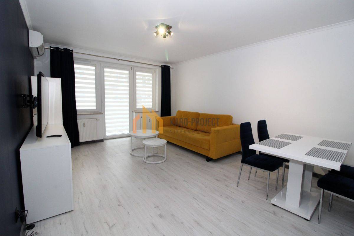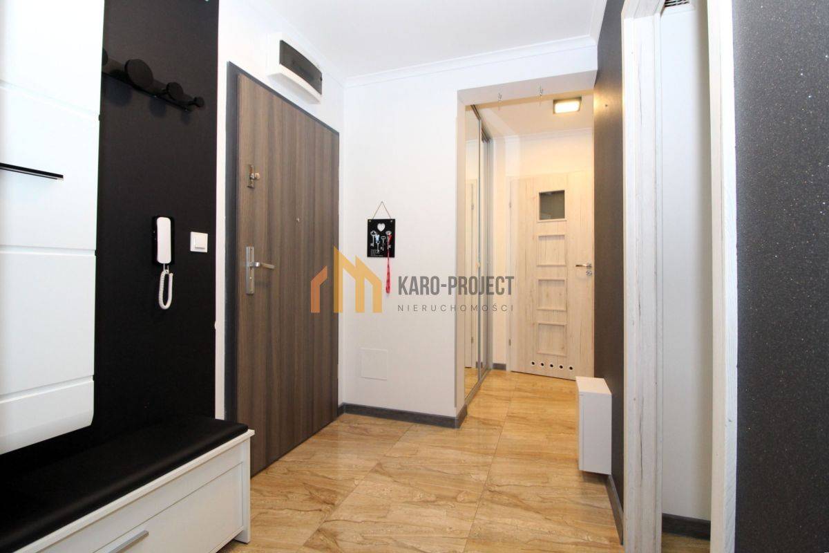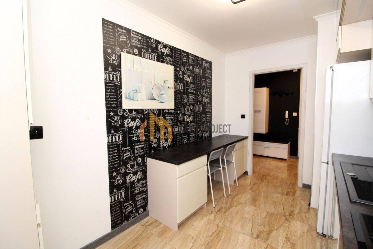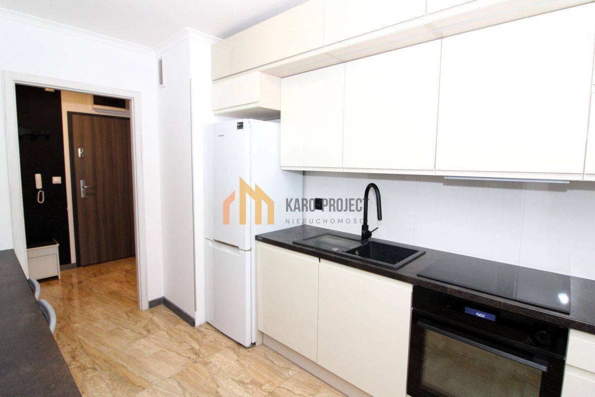 Przestronny pokój dzienny o powierzchni powyżej 20m2, umeblowany, z klimatyzacją. Oddzielna kuchnia w pełni wyposażona w sprzęt AGD (płyta indukcyjna, piekarnik, mikrofalówka, lodówka, zmywarka). Sypialnia o powierzchni około 12,5m2 z dużym łóżkiem i pełną zabudową na całej ścianie co zapewnia wiele miejsca do przechowywania. Łazienka z kabiną prysznicową oraz pralką i suszarką. W korytarzu znajduje się obszerna szafa z lustrami oraz inne przydatne elementy wyposażenia.