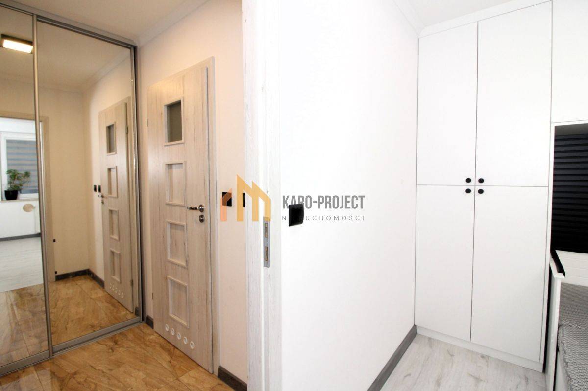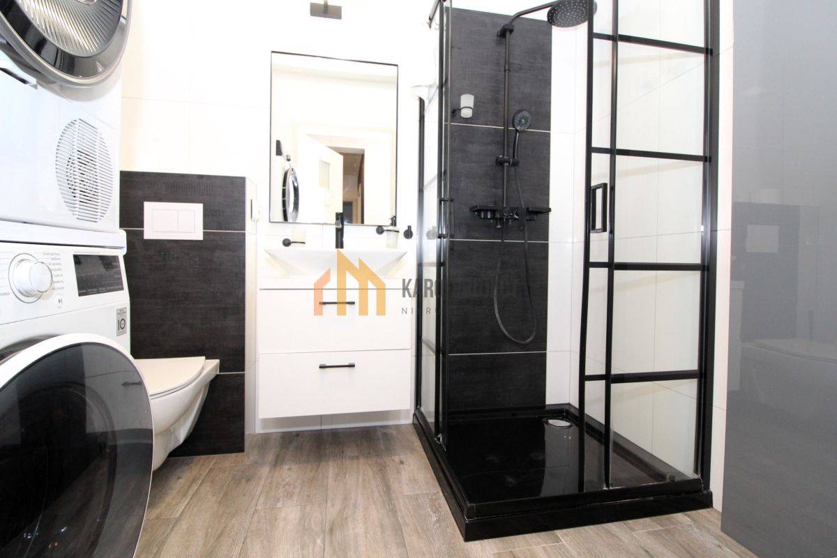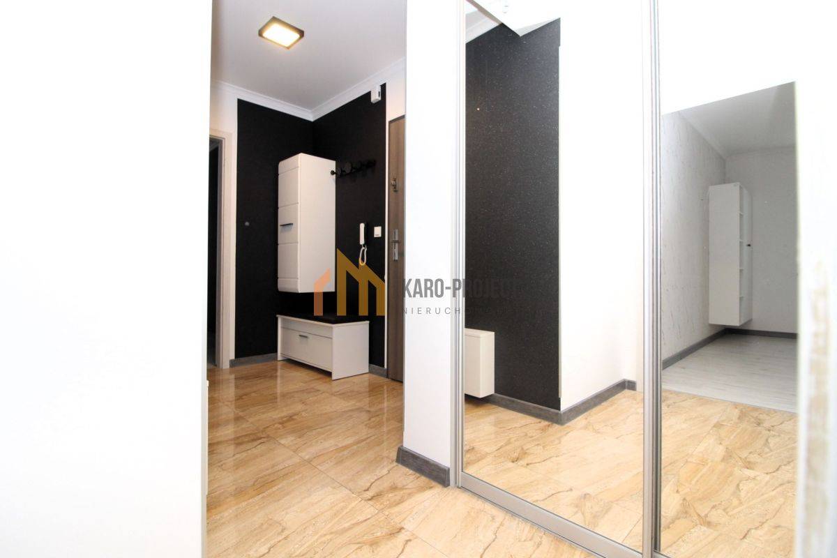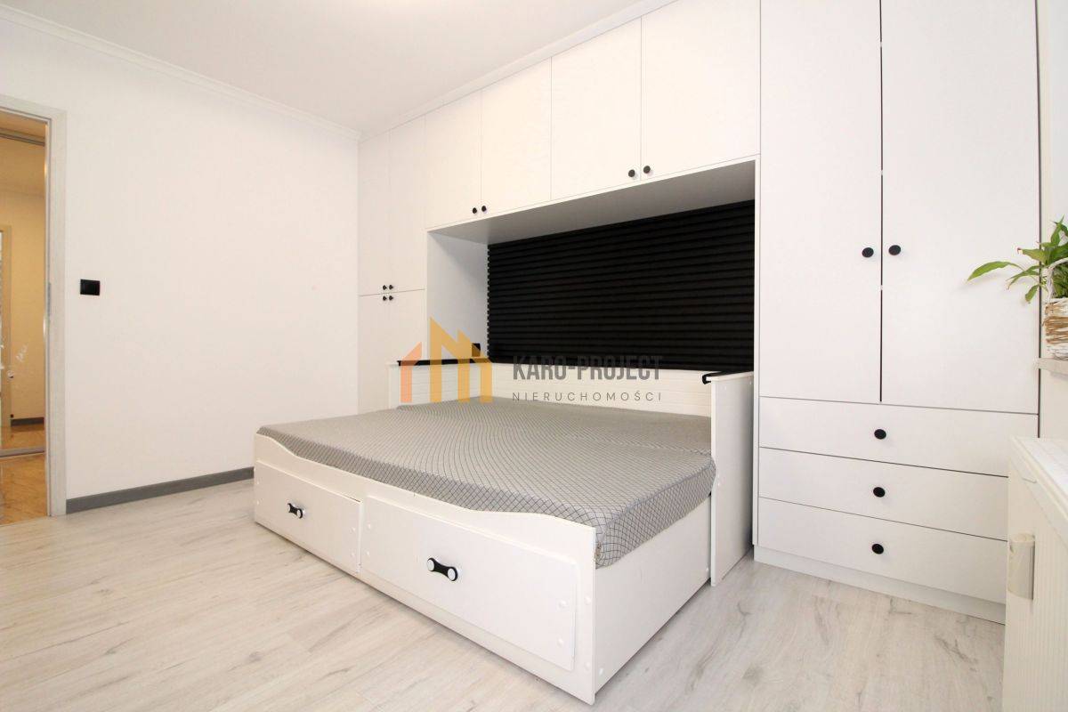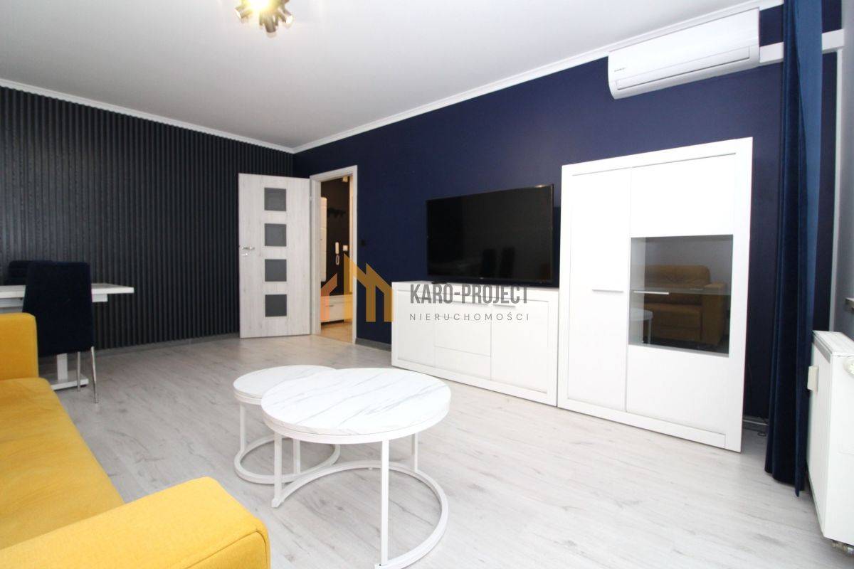 Przestronny pokój dzienny o powierzchni powyżej 20m2, umeblowany, z klimatyzacją. Oddzielna kuchnia w pełni wyposażona w sprzęt AGD (płyta indukcyjna, piekarnik, mikrofalówka, lodówka, zmywarka). Sypialnia o powierzchni około 12,5m2 z dużym łóżkiem i pełną zabudową na całej ścianie co zapewnia wiele miejsca do przechowywania. Łazienka z kabiną prysznicową oraz pralką i suszarką. W korytarzu znajduje się obszerna szafa z lustrami oraz inne przydatne elementy wyposażenia.