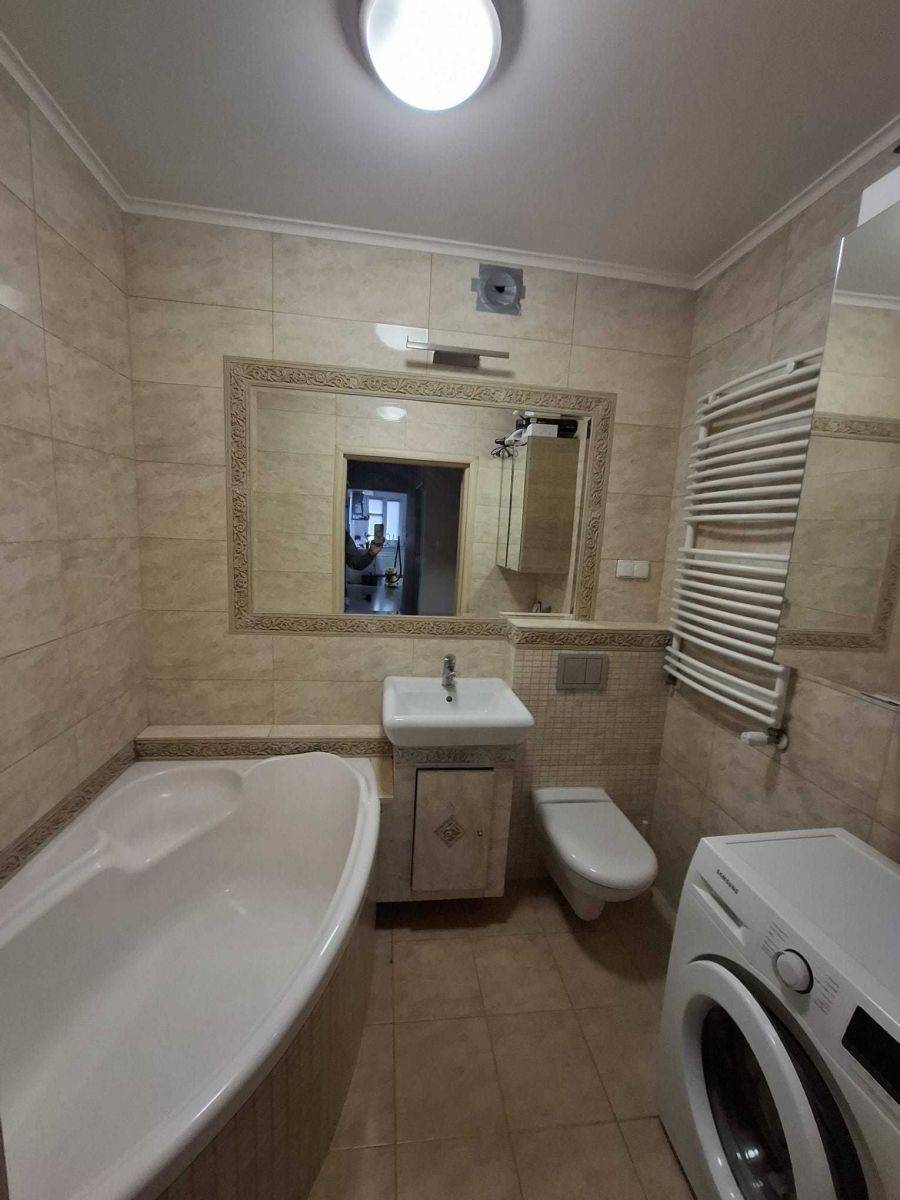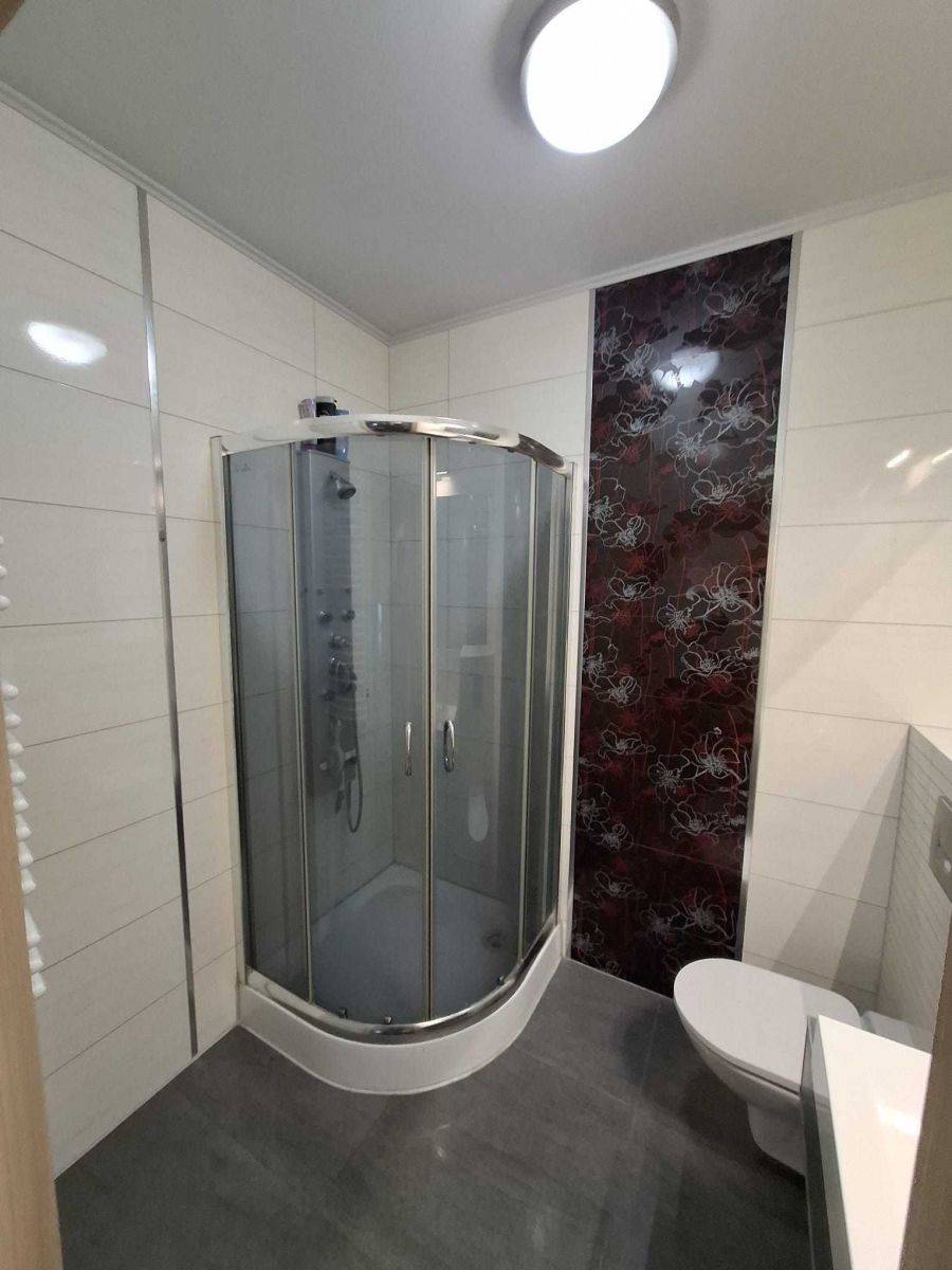 W części dziennej znajduje się jedna z łazienek (ta z kabiną prysznicową) W części tzw. nocnej, obok sypialni znajduje się druga, duża łazienka z wanną narożną.