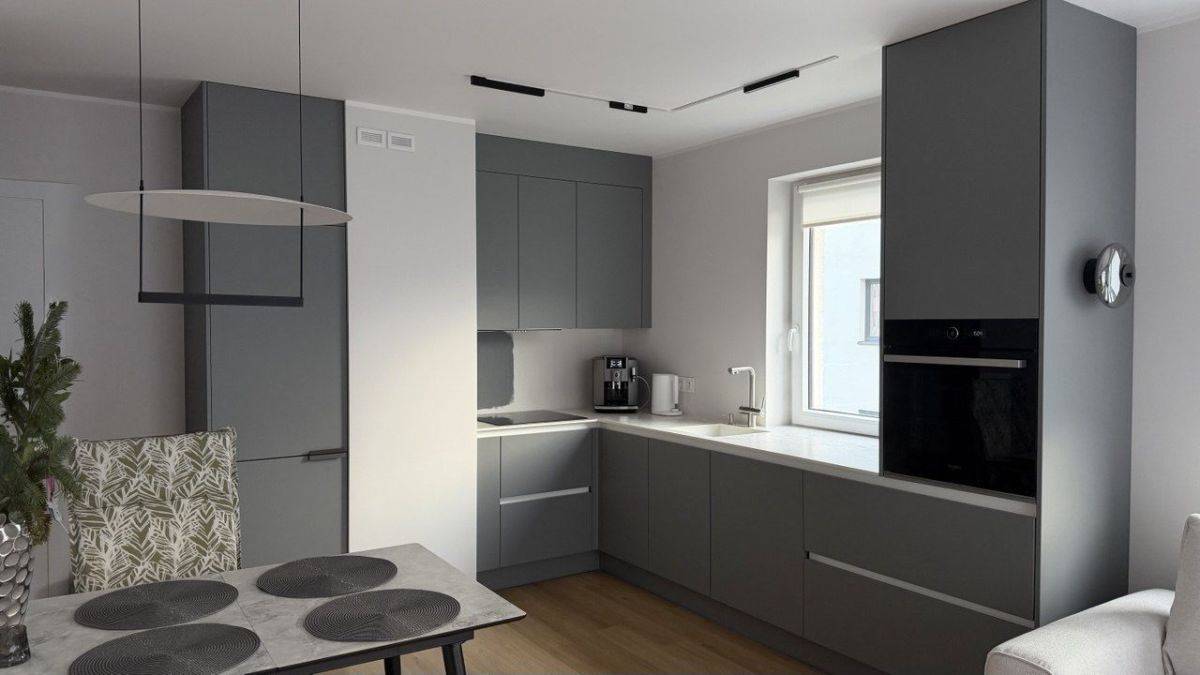 - Układ: trzy oddzielne pokoje + przestronny salon z kuchnią