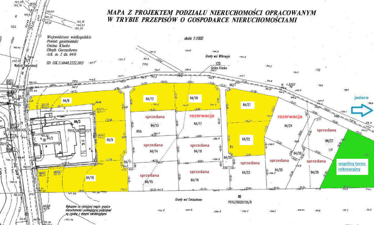 - nr 64/22 (działka rekreacyjna) - 1.364 m2 - 109.120 zł