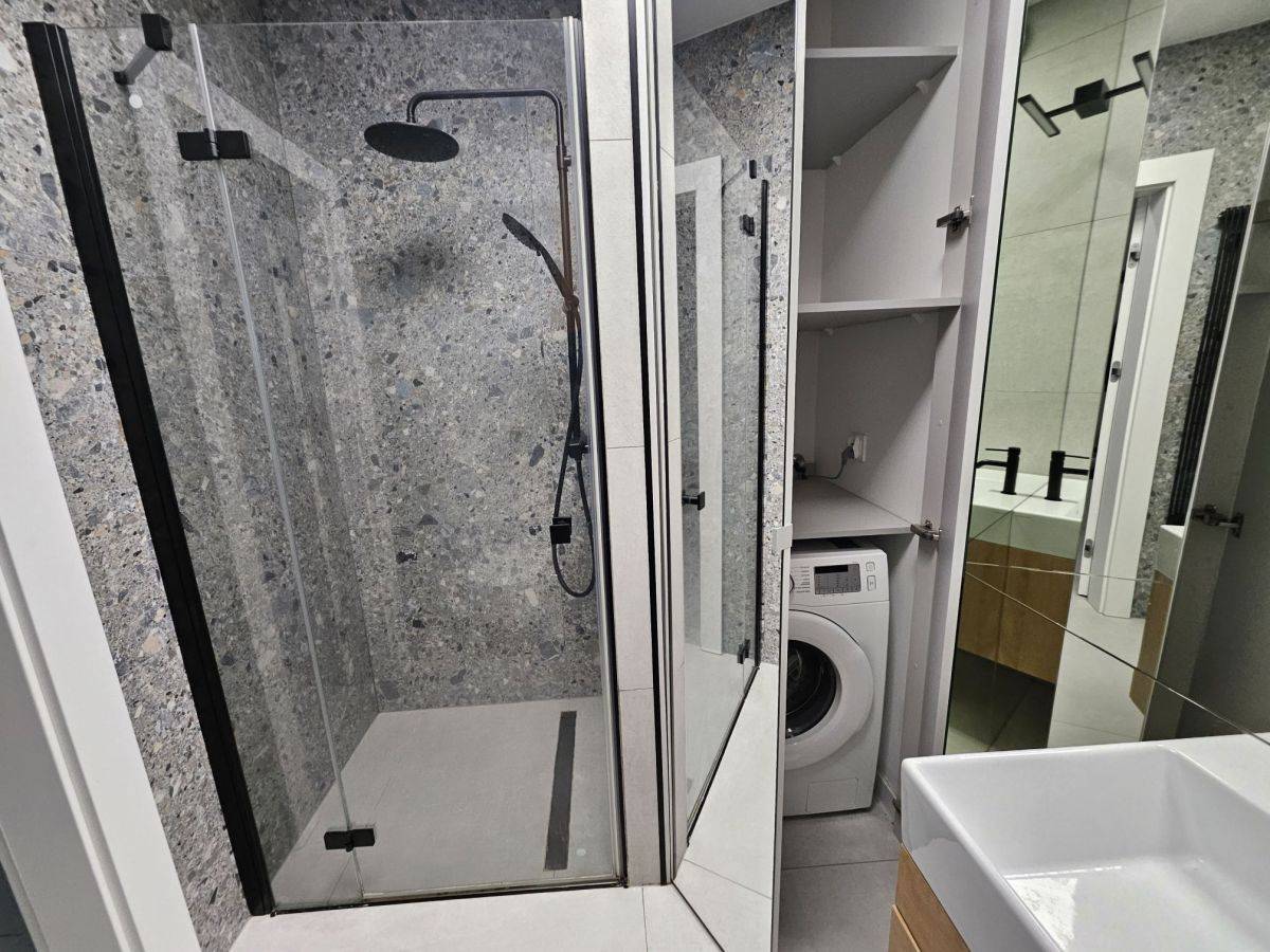 - Elegancka łazienka z WC, kabina prysznicowa, pralka