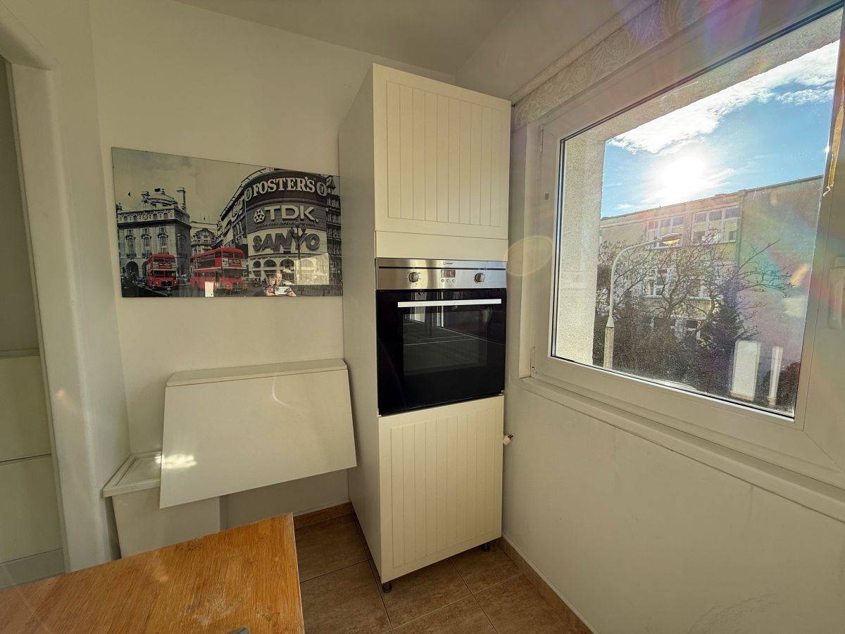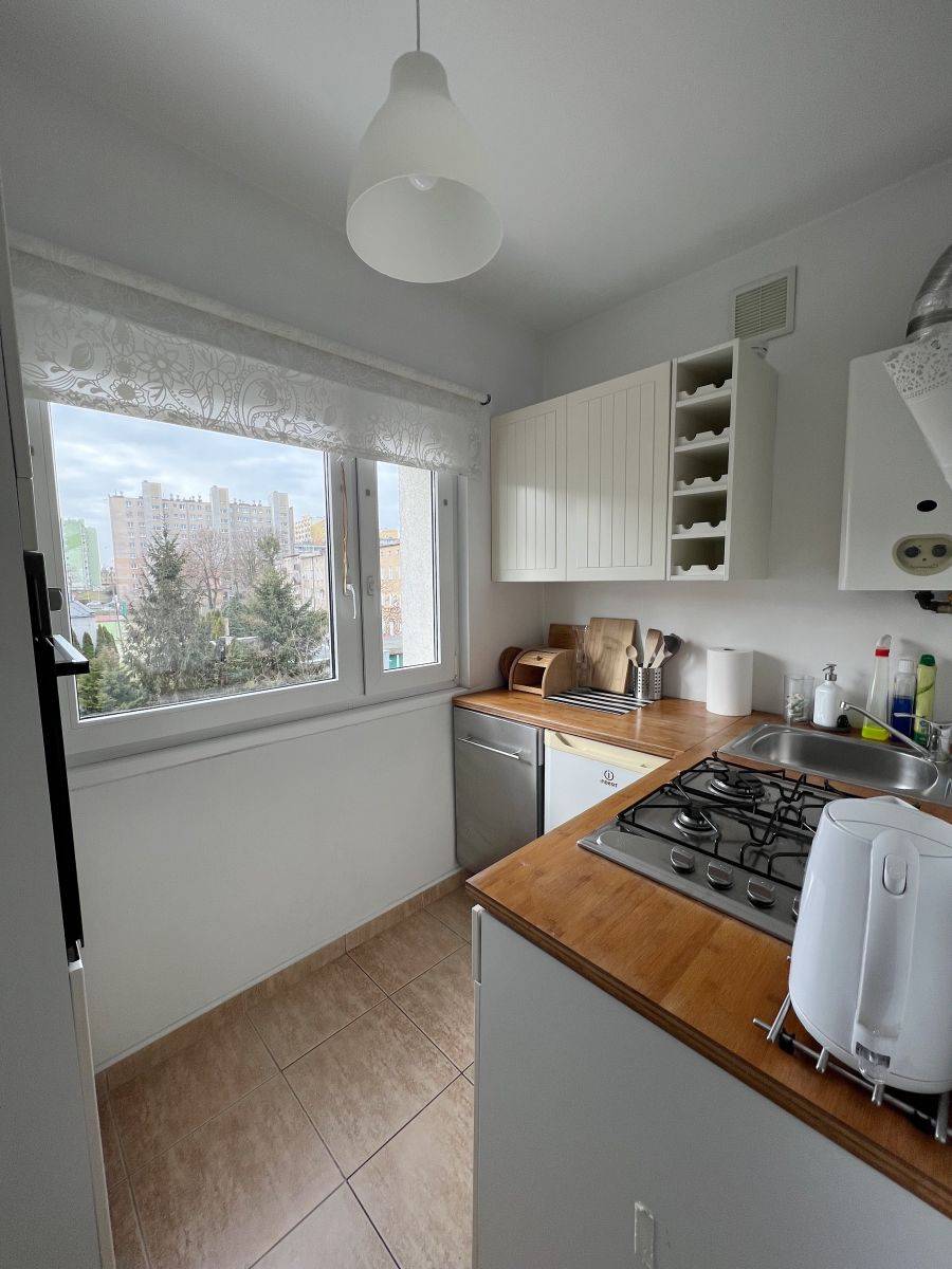 Mieszkanie jest w pełni umeblowane i wyposażone w niezbędne sprzęty AGD: pralka, lodówka, zmywarka, piekarnik, kuchenka gazowa.