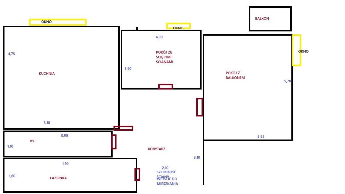 pokój z balkonem 14,55 m2