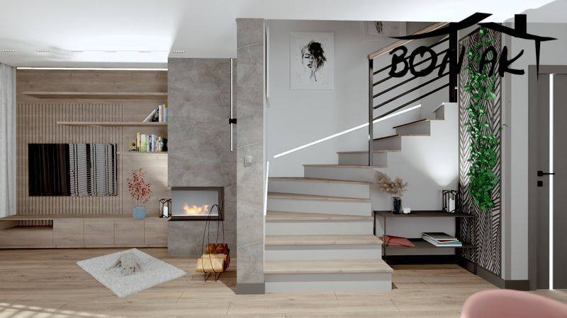 - Strop żelbetowy SMART, a na poddaszu drewniany, ocieplony wełną 25 cm, wykończony płytami gipsowymi.