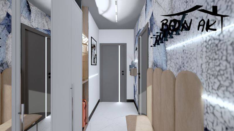 - Korytarz (3,47 m²) z miejscem na zabudowę meblową,